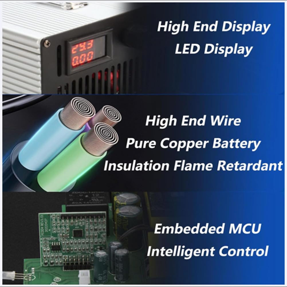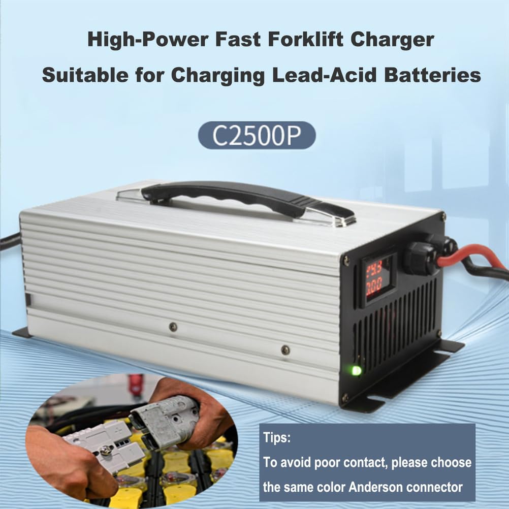 [36V Forklift Charger] This forklift battery charger with 50A/120A/175A/350A Anderson Plug is a fully automatic smart fast charging device. Plug and Forget Charging technology the output will automatically stop after it is fully charged.The LED screen displays voltage, current, allowing you to know the charging status at any time.