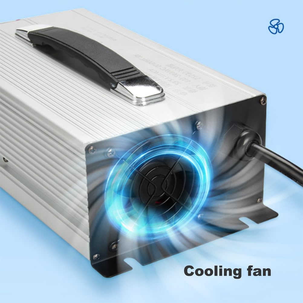 [High quality] Electric car charger aluminum alloy case is sturdy and durable, and its built-in cooling fan can effectively cool the charger and make it work smoothly. Keeping good ventilation will make the forklift charger work better and ensure a longer service life. Golf cart charger is also designed with a handle, which is convenient for you to carry it with you.