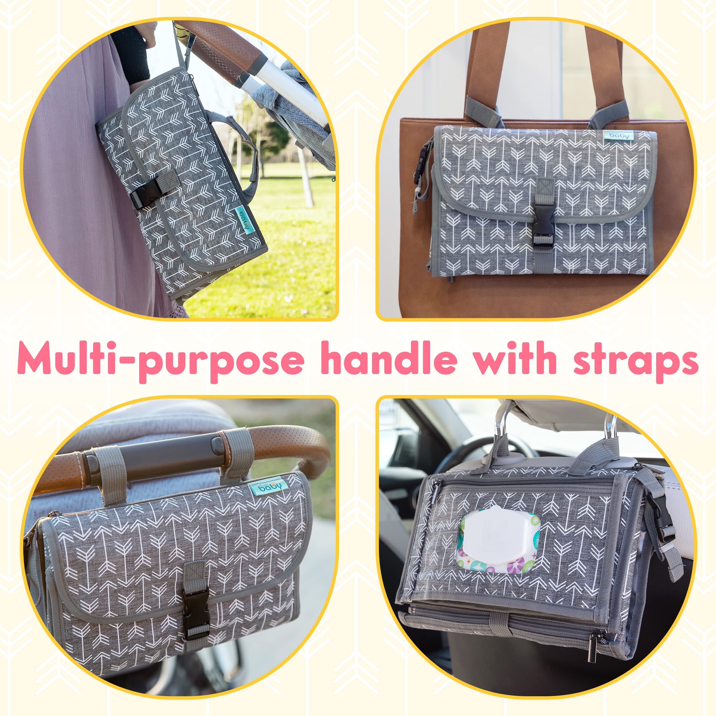 Smart & Multipurpose Travel Bag - This travel changing pad has 2 sides, a reversible wipe holder for wipe access, and a front zipper pocket. It also has Velcro straps for stroller attachment and more!