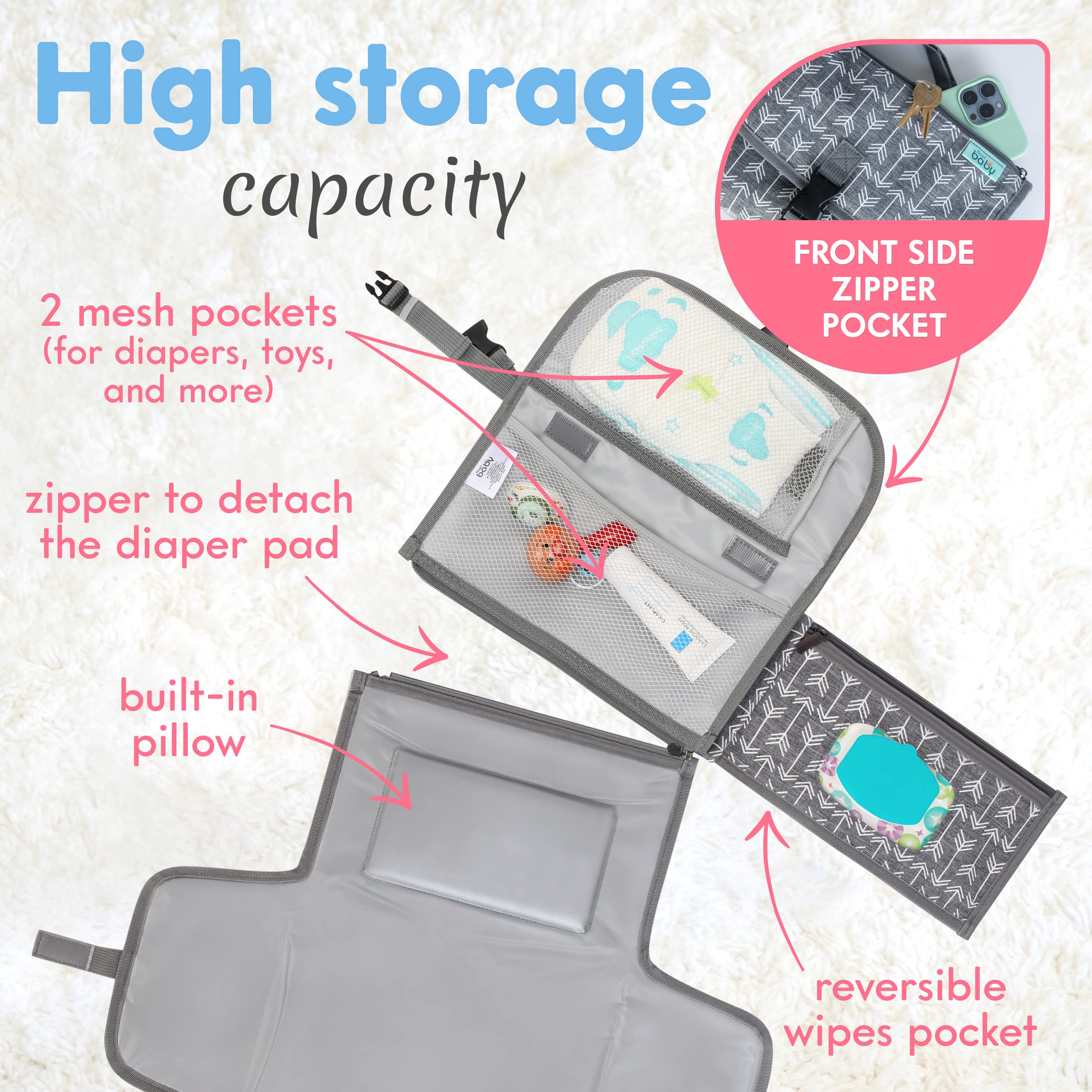 Diaper Change Anytime, Anywhere - Our diaper changing station with a built-in pillow is your ultimate partner. Whether inside or outside, this diaper changing mat lets you change your baby's diaper on any flat surface!