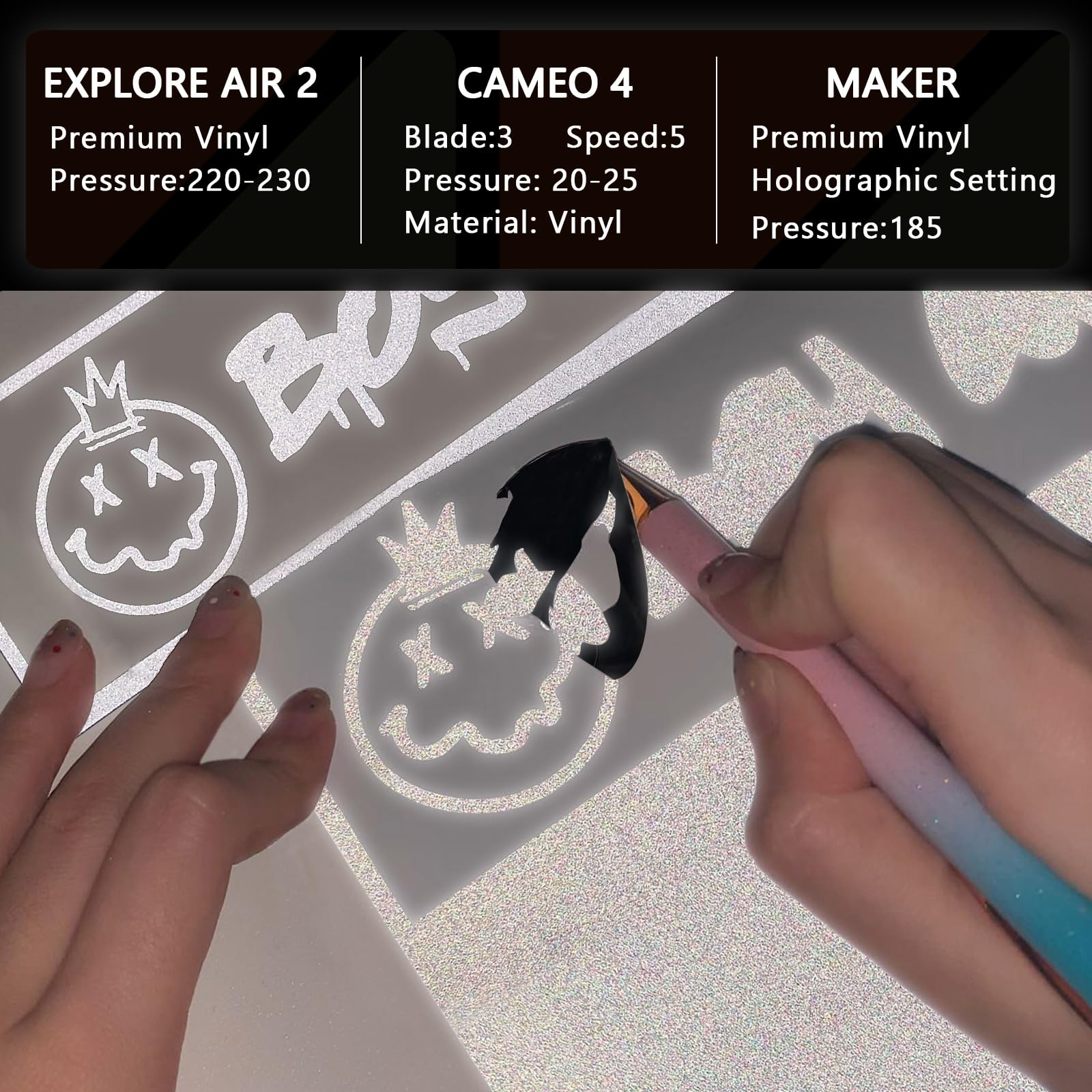 Easy To Apply: Our reflective black vinyl for machine, also compatible with most cutting machines in the market. We have also adapted high quality PET Backing which is thin and soft, and it is easy to remove rather than the usual paper backing. (Notice: Cutting Test is always recommended.)