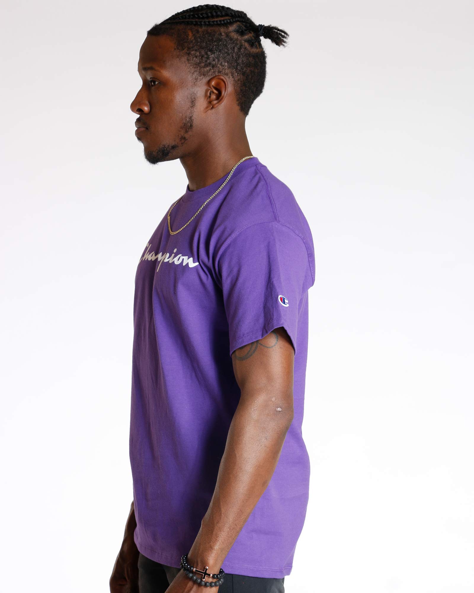 Description Our Champion heritage tee, available in solids and prints, is heavyweight 7 ounce. Jersey fabric. Champion graphics are truly inspired by our archives and our long history of athletic wear. Champion - a step above.