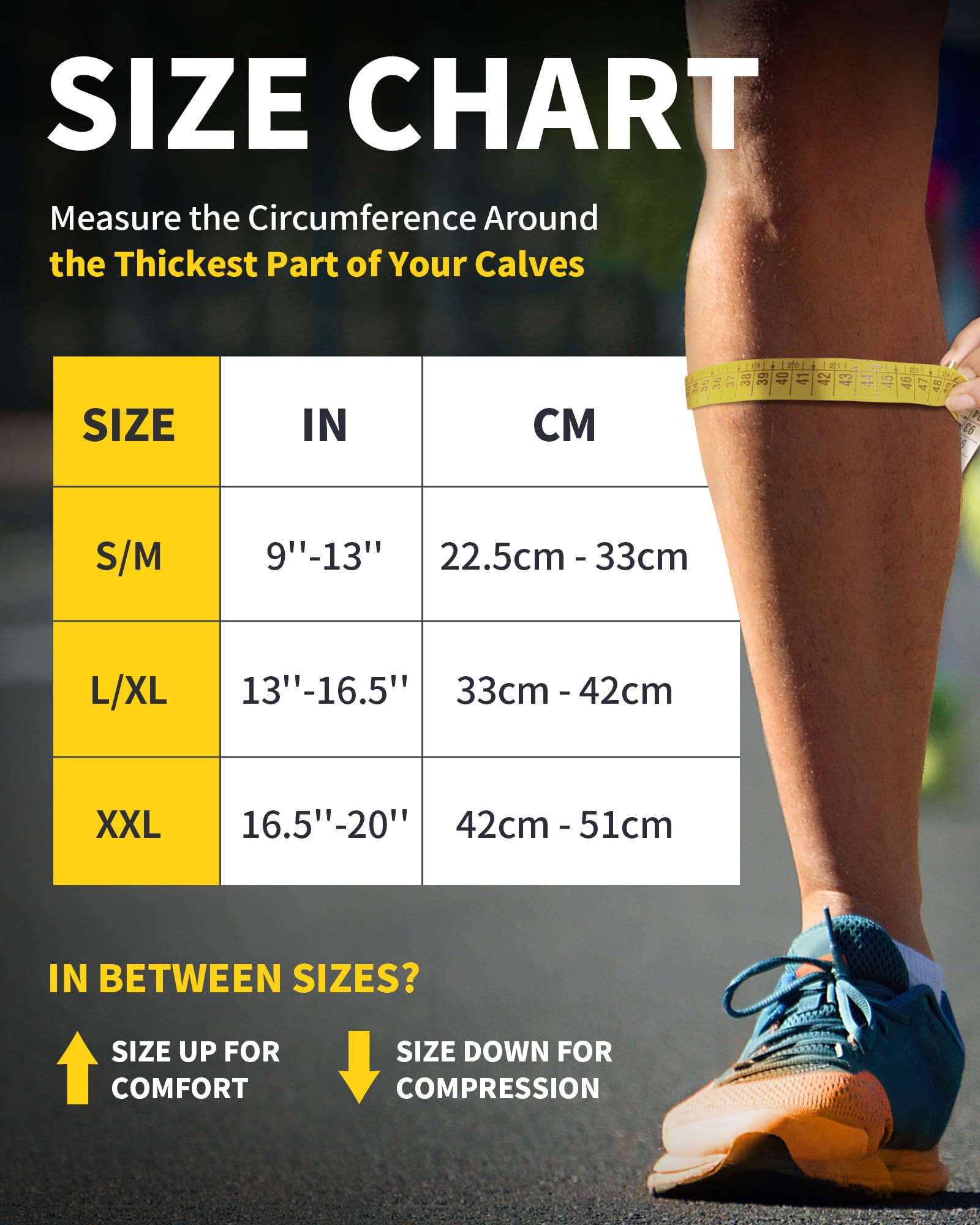 Calf Compression Sleeve - The 360Β°surround support provides the right amount of graduated compression to your leg muscles to enhance blood circulation, relieve muscle fatigue during running, and reduce stress and pain in the tibia. Help ease painful and tired muscles after a hard dayβs work or an intense, all-out workout.