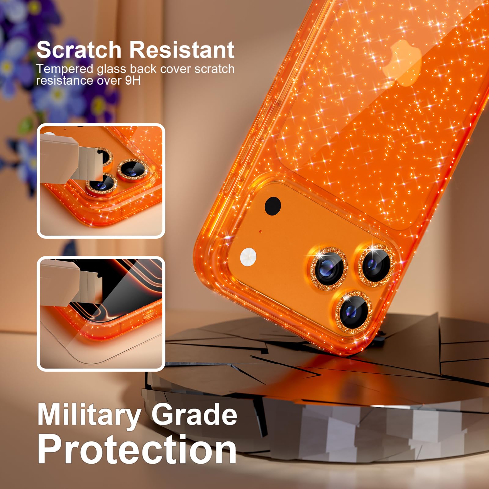 Full Glitter Design: Both the back and the side frame are full of glitter and come with a set shiny diamond camera lens protective cover, making your 17 pro max more feminine and bringing more compliments