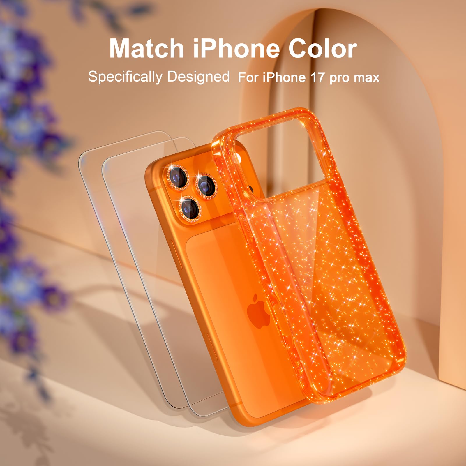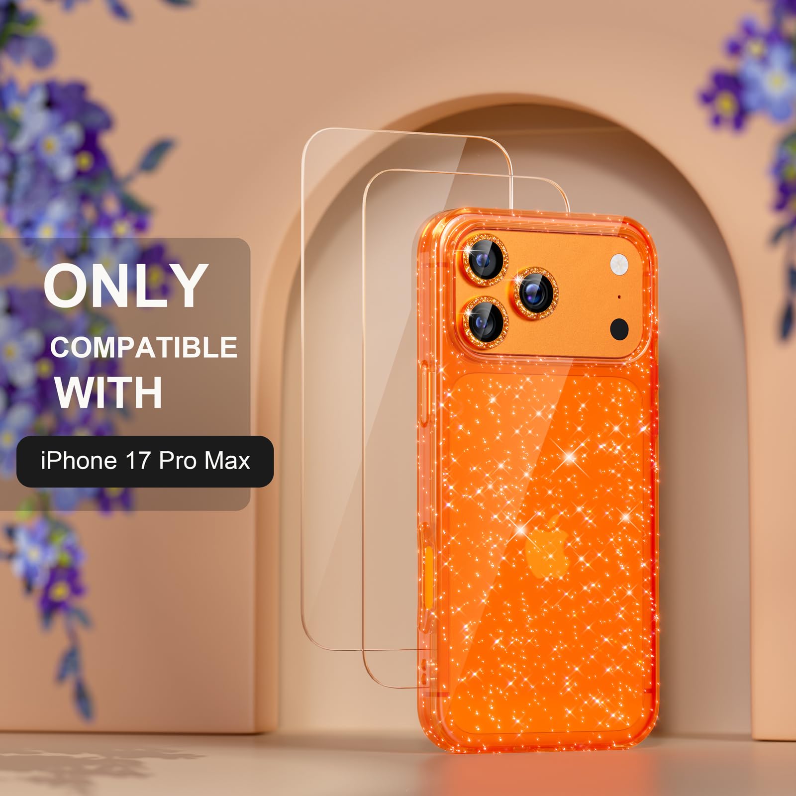 Package Includes: 1 x Glitter Case replacement for iphone 17 pro max, 2 x tempered glass screen protectors, and 3 x Camera Lens Protectors. Compatible for iphone 17 pro max 6.9-inch 2025. Please check your phone model and make sure you order the right size