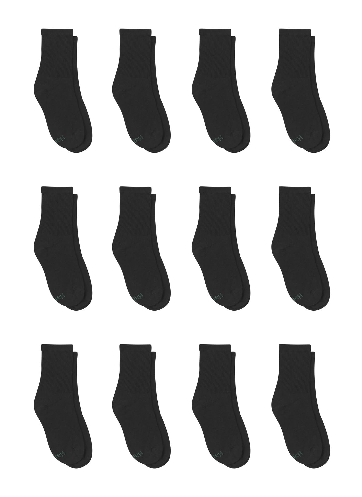 Description Start every day off right with these Hanes® boys’ ankle socks, designed to keep his feet comfortable, supported, and ready for an adventure. This convenient 14-pack means there’s always a clean pair ready to go - perfect for school, sports, and weekends. Reinforced heels and toes add extra durability, while a cushioned sole and smooth toe seam help keep every step soft and comfortable. The polyester and cotton blend with a touch of spandex offers just the right amount of stretch, so each pair stays put and keeps its shape. Cool Comfort® fabric helps wick away moisture to keep his feet cool and dry all day long. Finished with a ribbed cuff for a stay-in-place fit, these ankle socks for boys bring a classic look to his everyday rotation. And when laundry day rolls around, the EZ Sort® system helps make matching kids’ socks simple and stress-free.