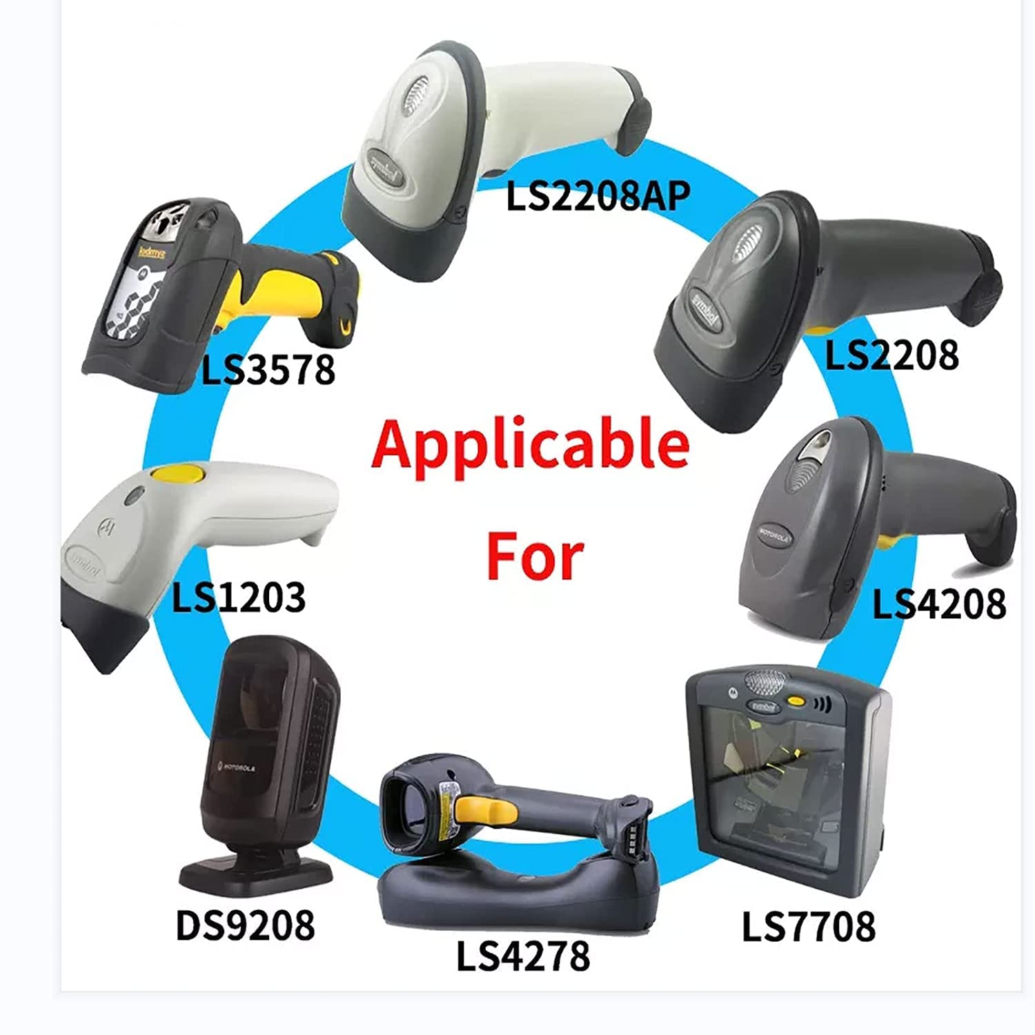 Compatible with kinds of Symbol Zebra Motorola barcode scanners: LS1203, LS2208, DS2208, DS8178, DS2278, DS9308, DS4608, DS8108, LS4208, DS4208, LS3408, LS4278, LI4278, LS3478, DS3478, LS3578, DS3578, LS7708, DS7708, LS7808, DS3508, DS9808, DS6707, DS6708, DS6608, DS6878, DS9208, DS4308, LS9203