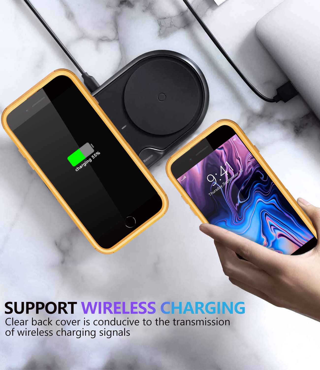 Heavy Duty :Protection.Raised lip ensures extra protection for the screen and camera Support wireless charging without taking off the phone case