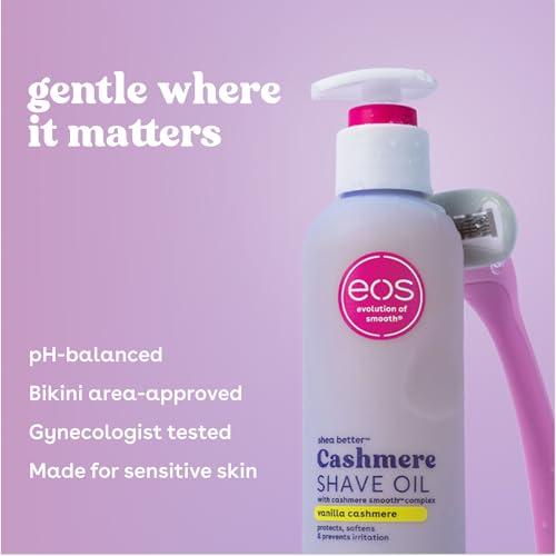 CASHMERE SMOOTH COMPLEX: eos Shave Oil is made with a moisture-rich blend of shea butter, cocoa butter, and argan butter to soften, hydrate, and cushion skin as you shave