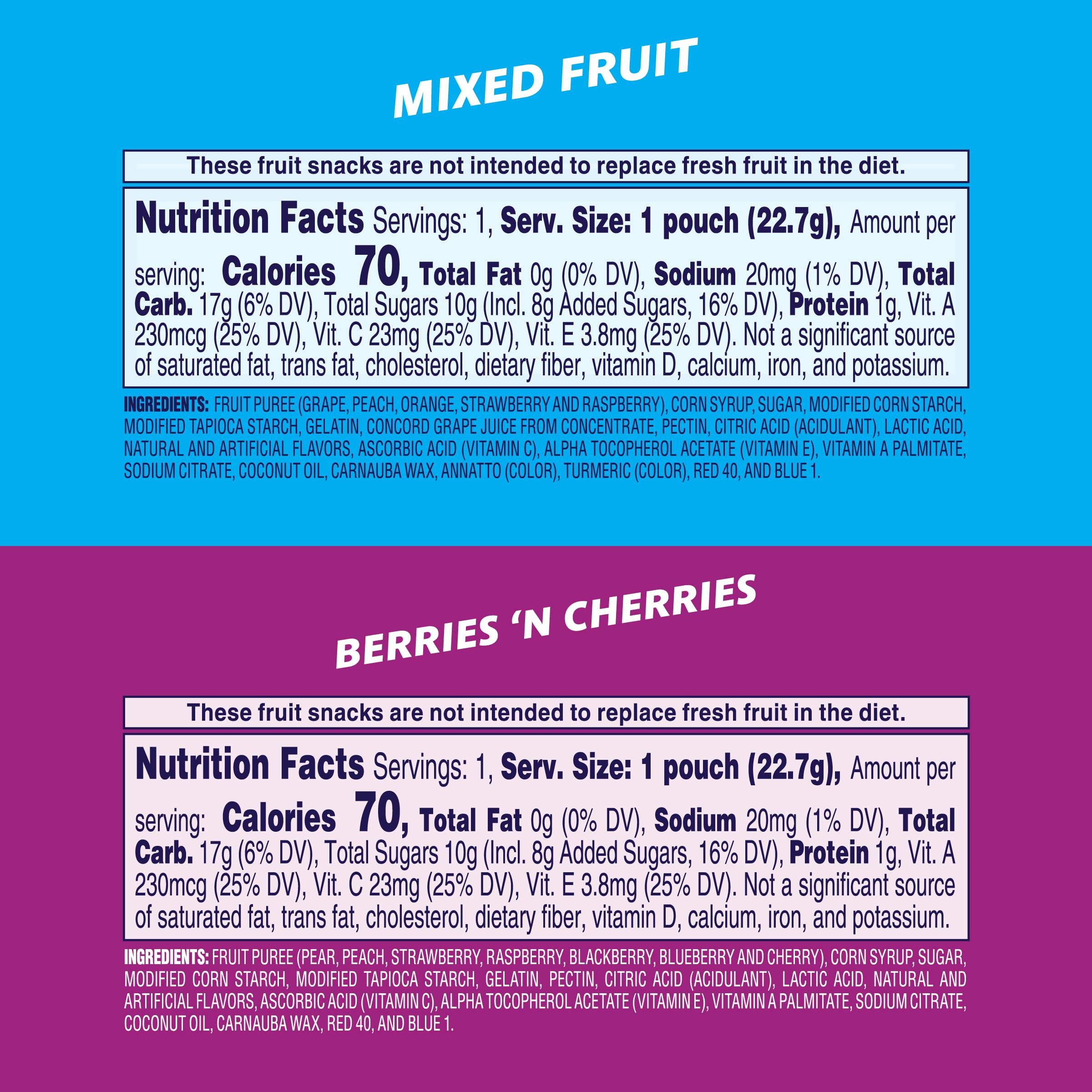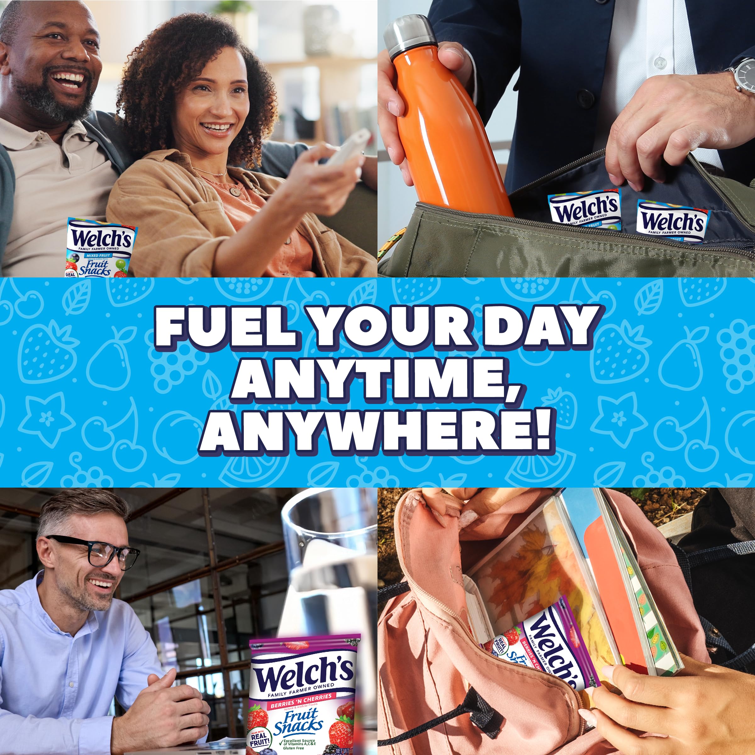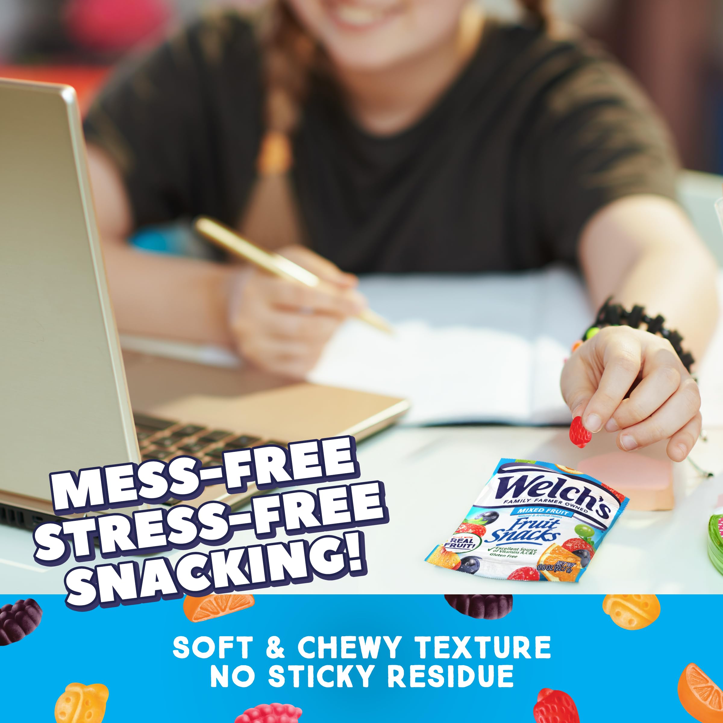 Enjoy the naturally fruity taste of Welch's Fruit Snacks, made with Whole Fruit as the first ingredient for a soft, chewy snack the whole family will love. Bursting with a variety of fun fruit shapes and flavors, these gluten free snacks are perfect for school, work, road trips, or anytime cravings. Each convenient snack pack is individually portioned and ideal for lunchboxes, purses, backpacks, and desk drawers. Welch's Fruit Snacks are an excellent source of Vitamin C, A & E and are both fat free and gluten free, offering a feel-good option for everyday snacking. Whether you're grabbing a few snack packs or stocking up with a snack boxβavailable in 12ct, 40ct, 60ct, or 144ct sizesβyouβll always have a delicious, family-favorite snack ready to go. With Welch's Fruit Snacks, snacking is simple, satisfying, and fun.