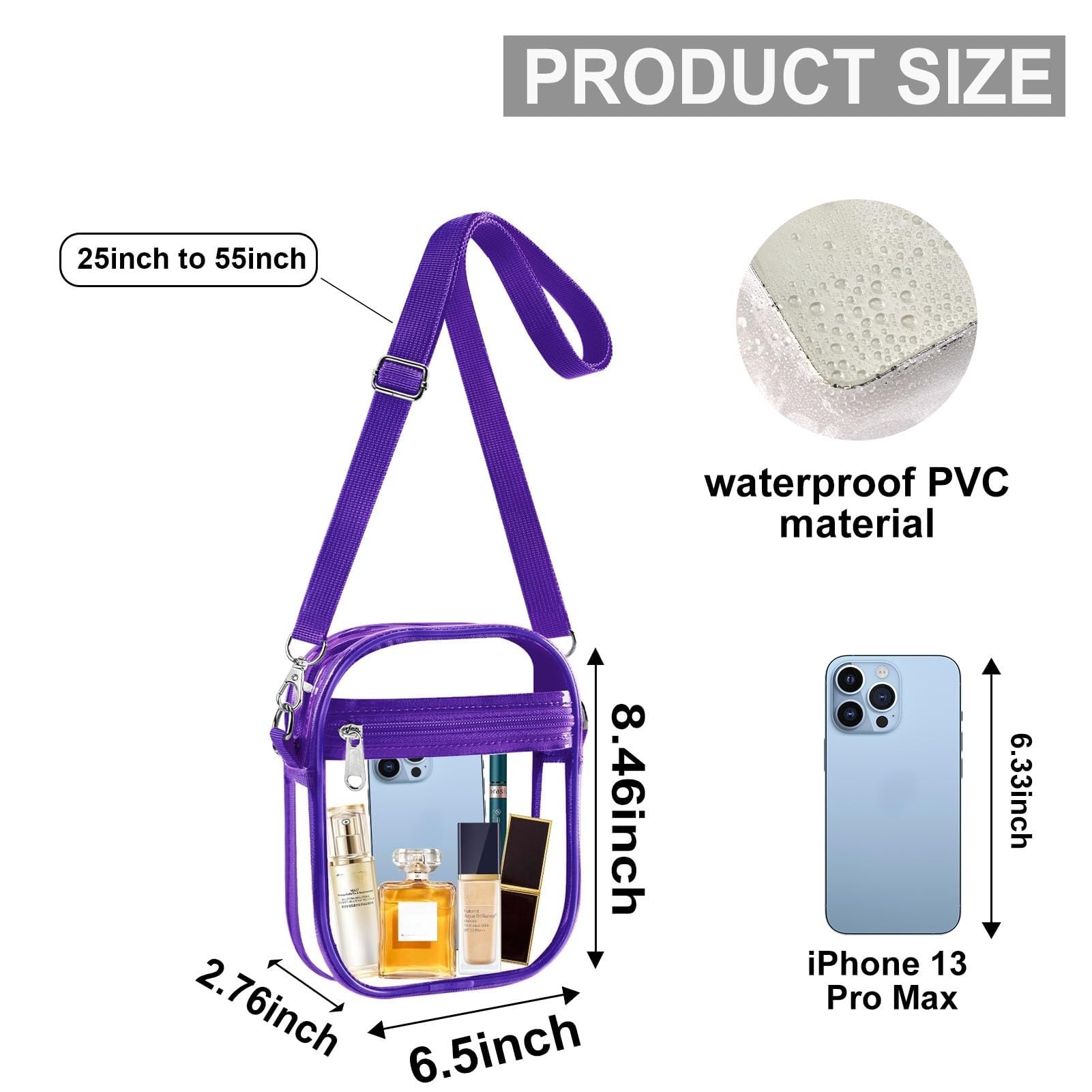 Get Through Security Easily: Clear crossbody purse bag with completely see through all around, including back. Pass through security with the clear handbag to avoid being rejected at the airport or at the stadium gatewd