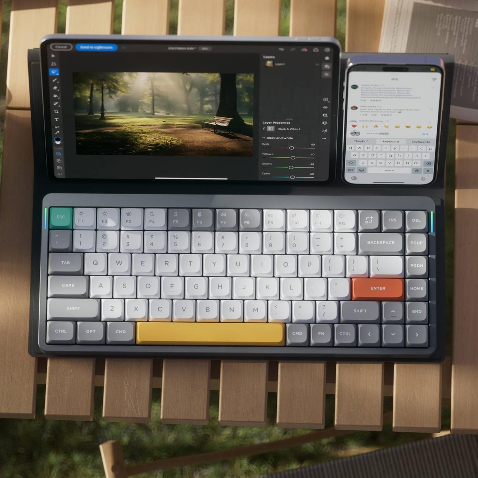 Cool RGB Backlit Effect: The backlight of Air75 V2 has more than 21 different color effects, which can be easily changed using key combination. Through console, you can even limitlessly customize lighting effects(the keycaps are not backlit).We also added two RGB light bars on each side of the Air75 V2's aluminum frame. The left bar shows caps lock and connection mode, while the right bar shows battery level and system mode, so you can see the status of your keyboard more visually.