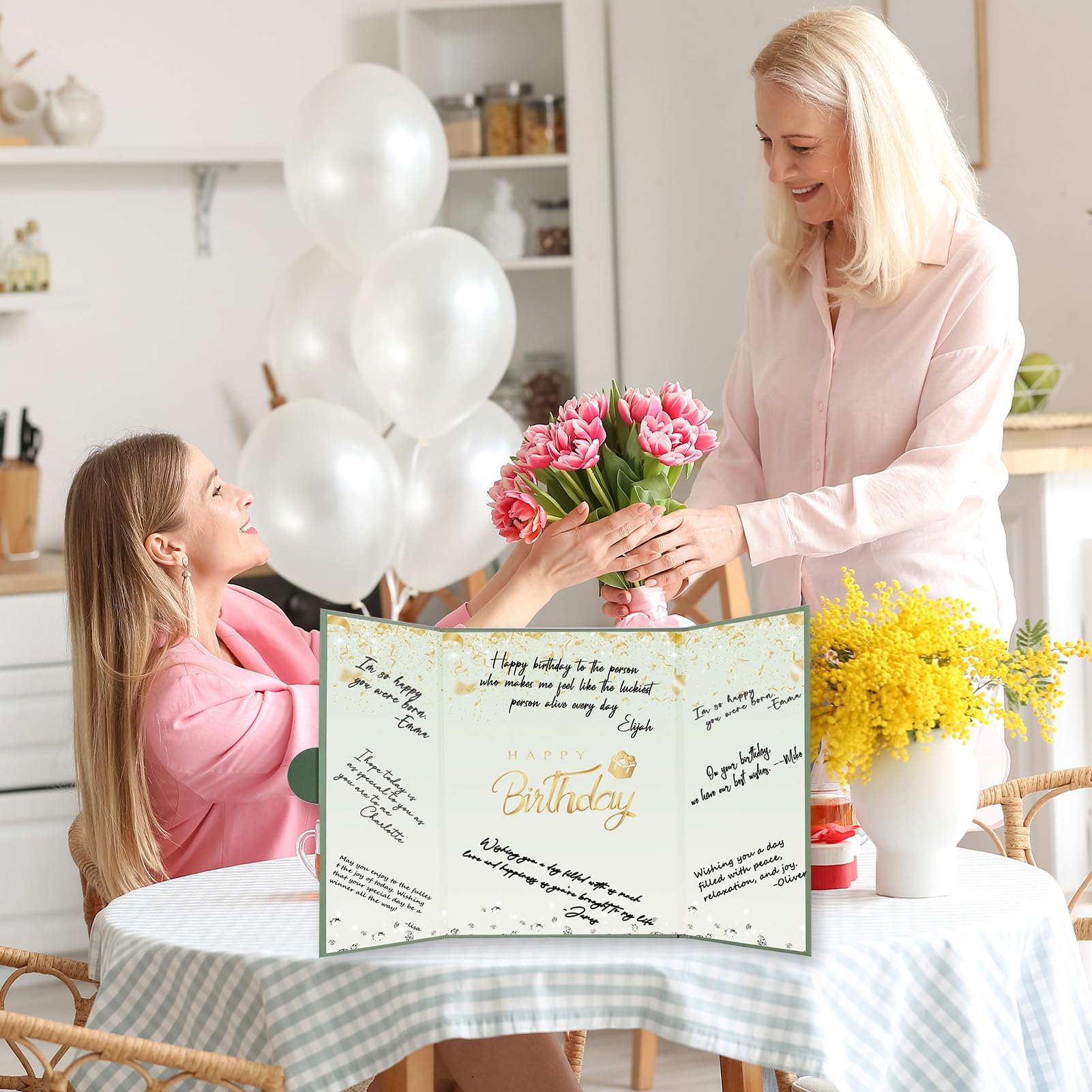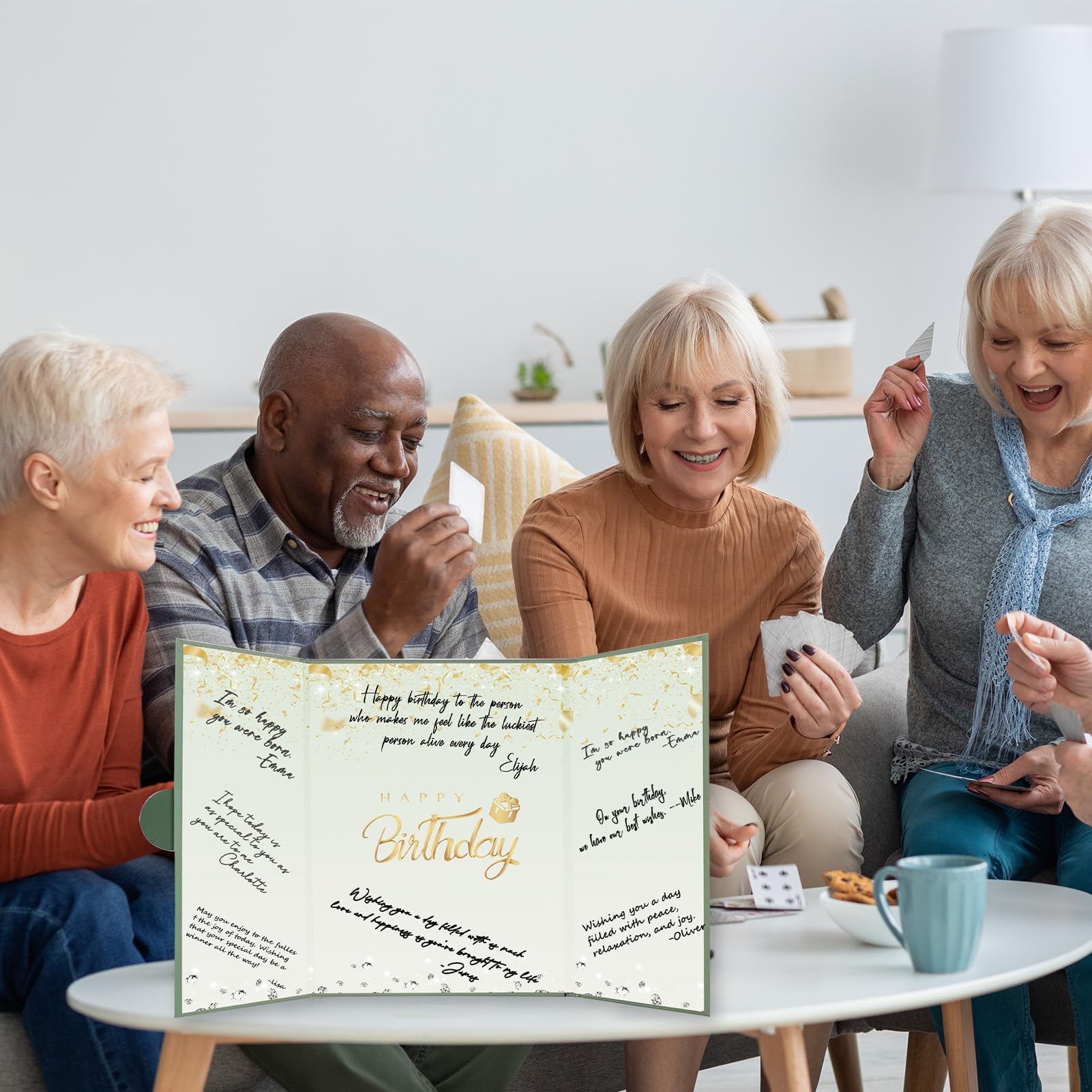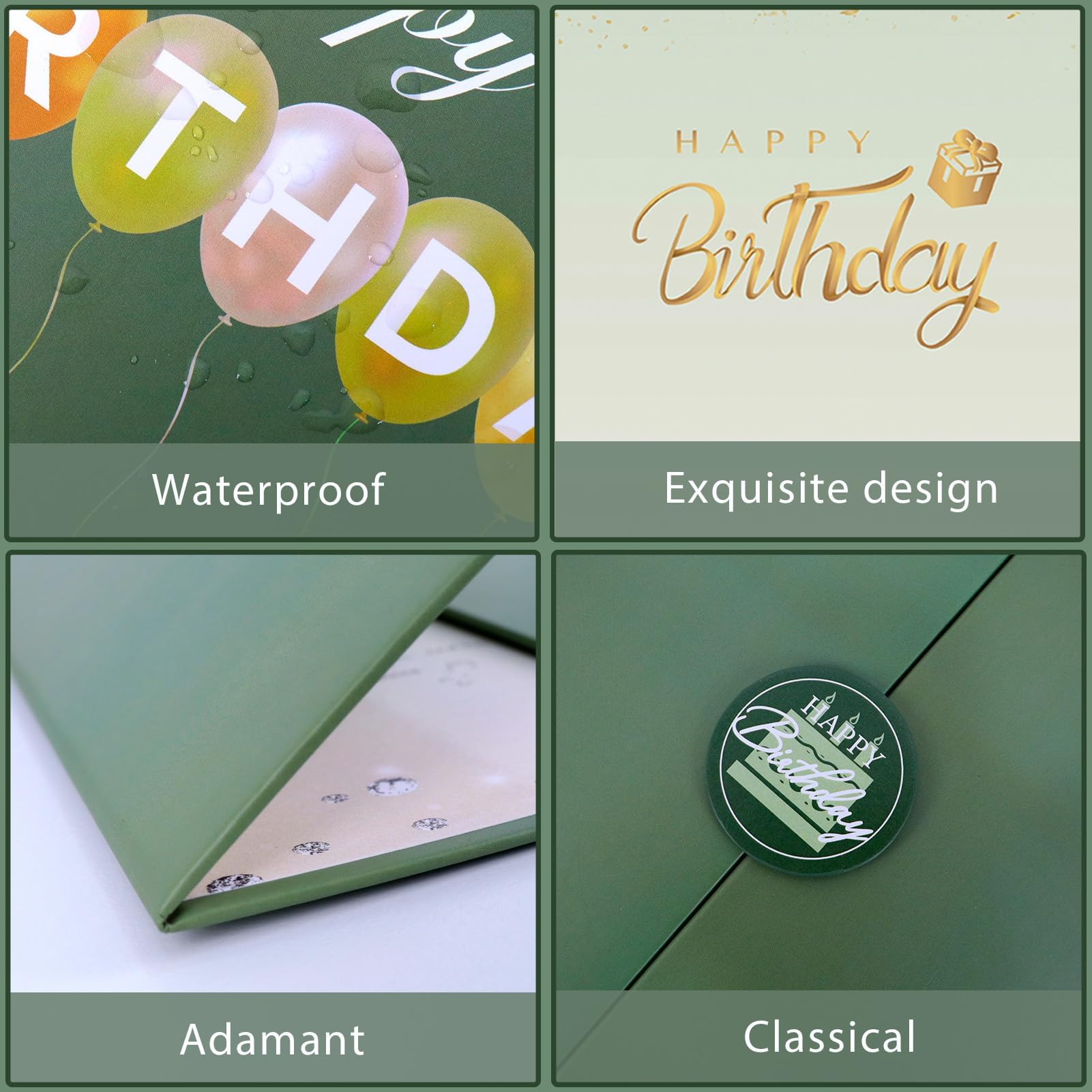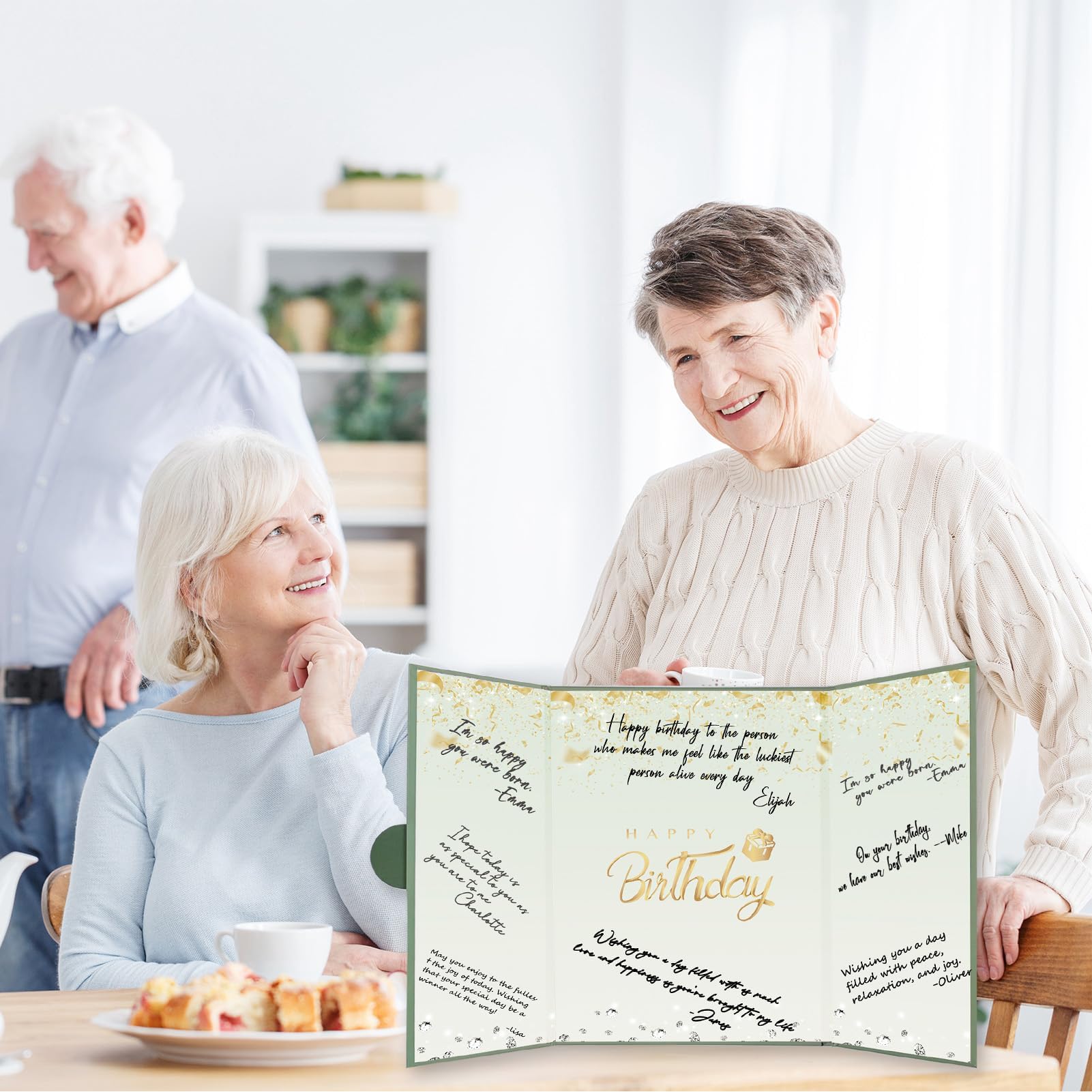 【Exquisite Design】- The green certificate has a badge on the cover, and the inside of the signature certificate is divided into three parts, the middle page is printed with the message 'Happy Birthday'. This green birthday signature guestbook can be opened directly and stand on the table. Tips: No pen.