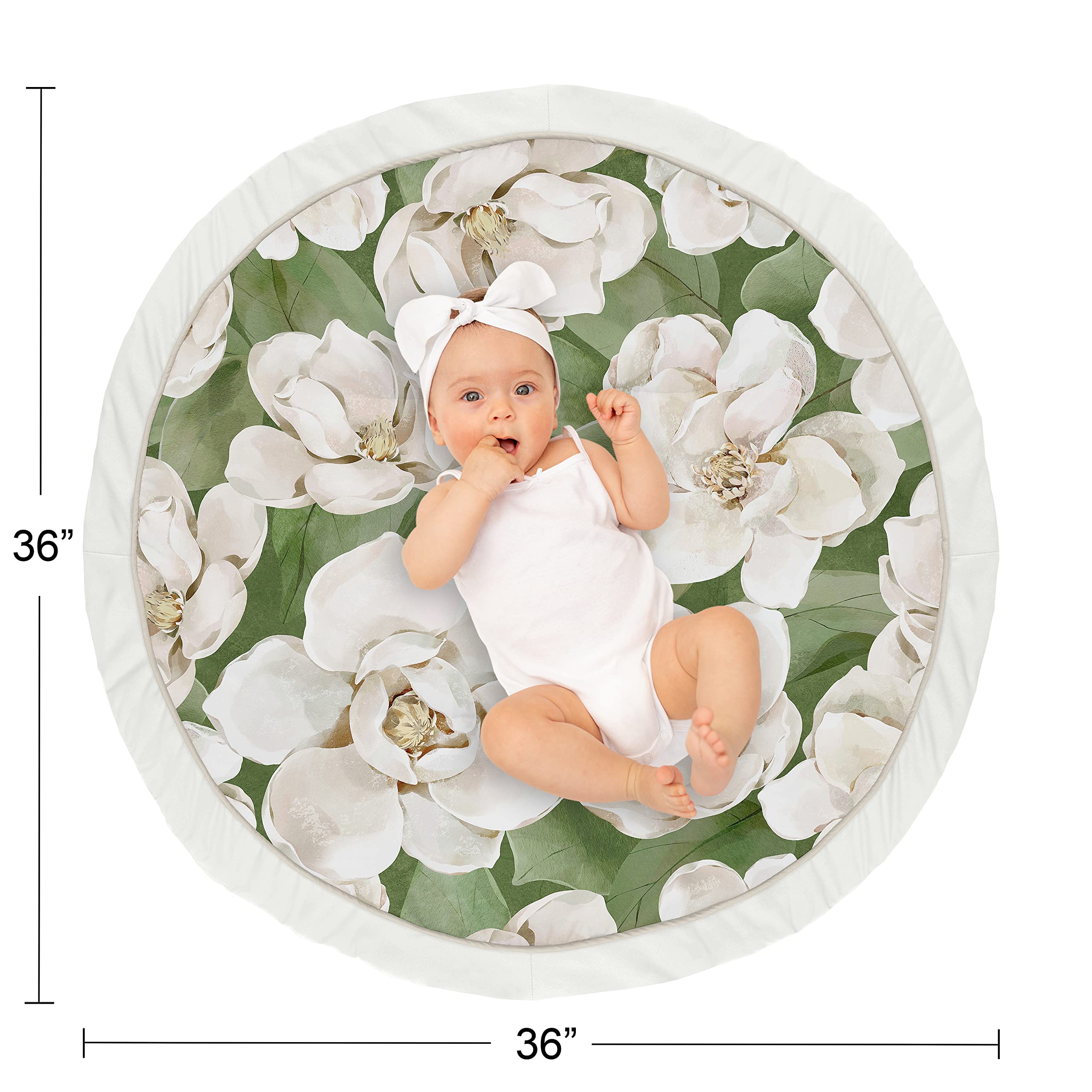 Playmat is designed using a sage green and ivory boho flower floral shabby chic bohemian watercolor garden print and finished with off white piping and border - Brushed Microfiber