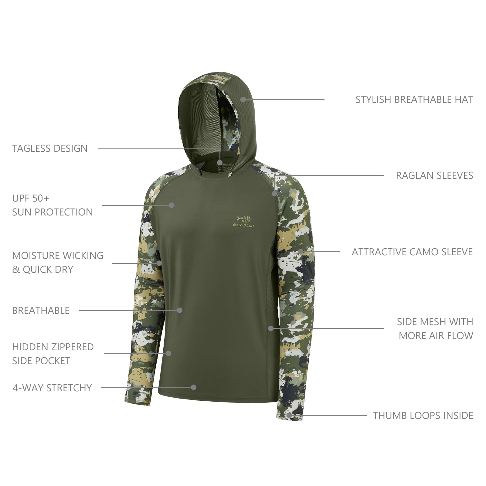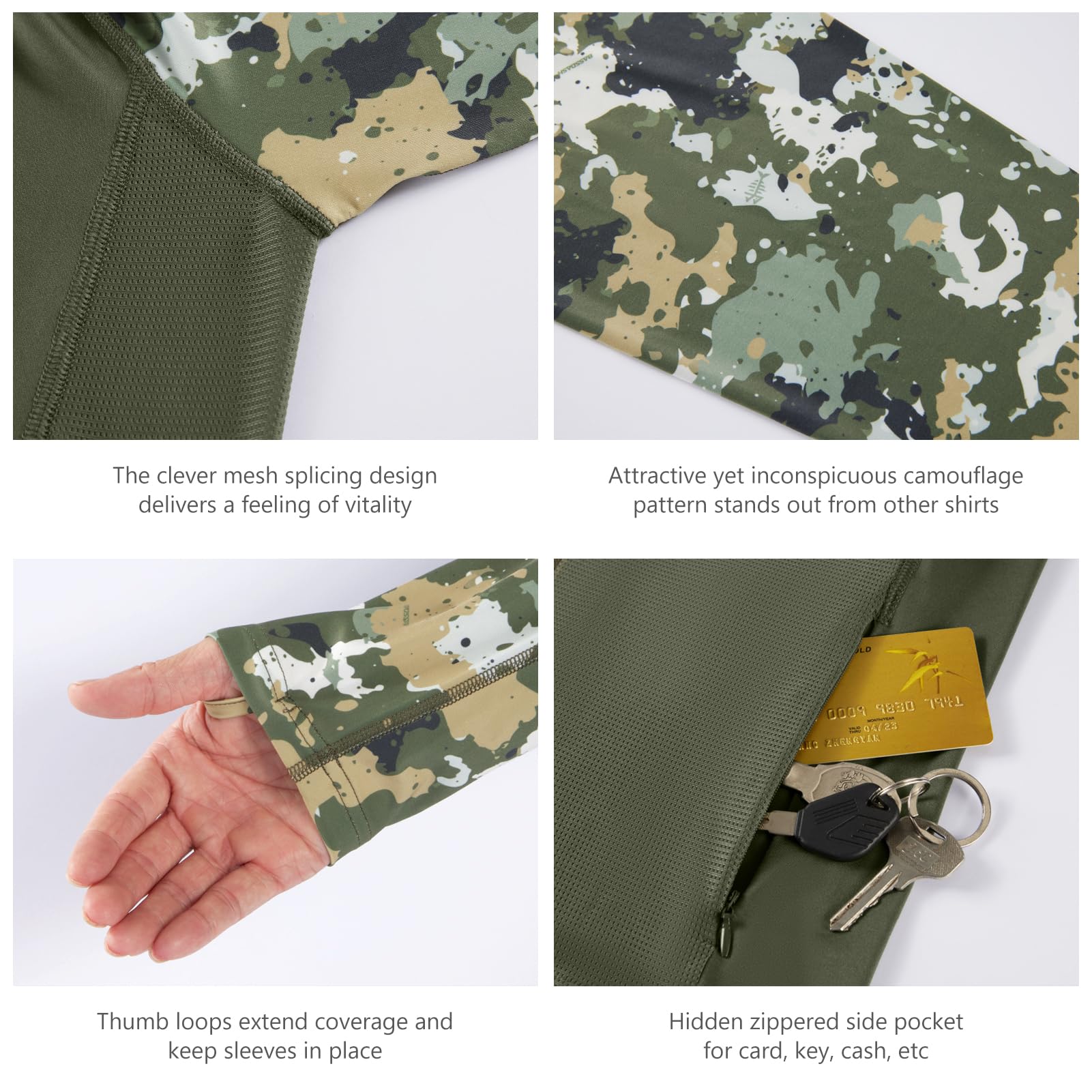 Innovative camo design on sleeves & hat - Attractive yet inconspicuous camouflage pattern with natural blended colors stands out from other shirts