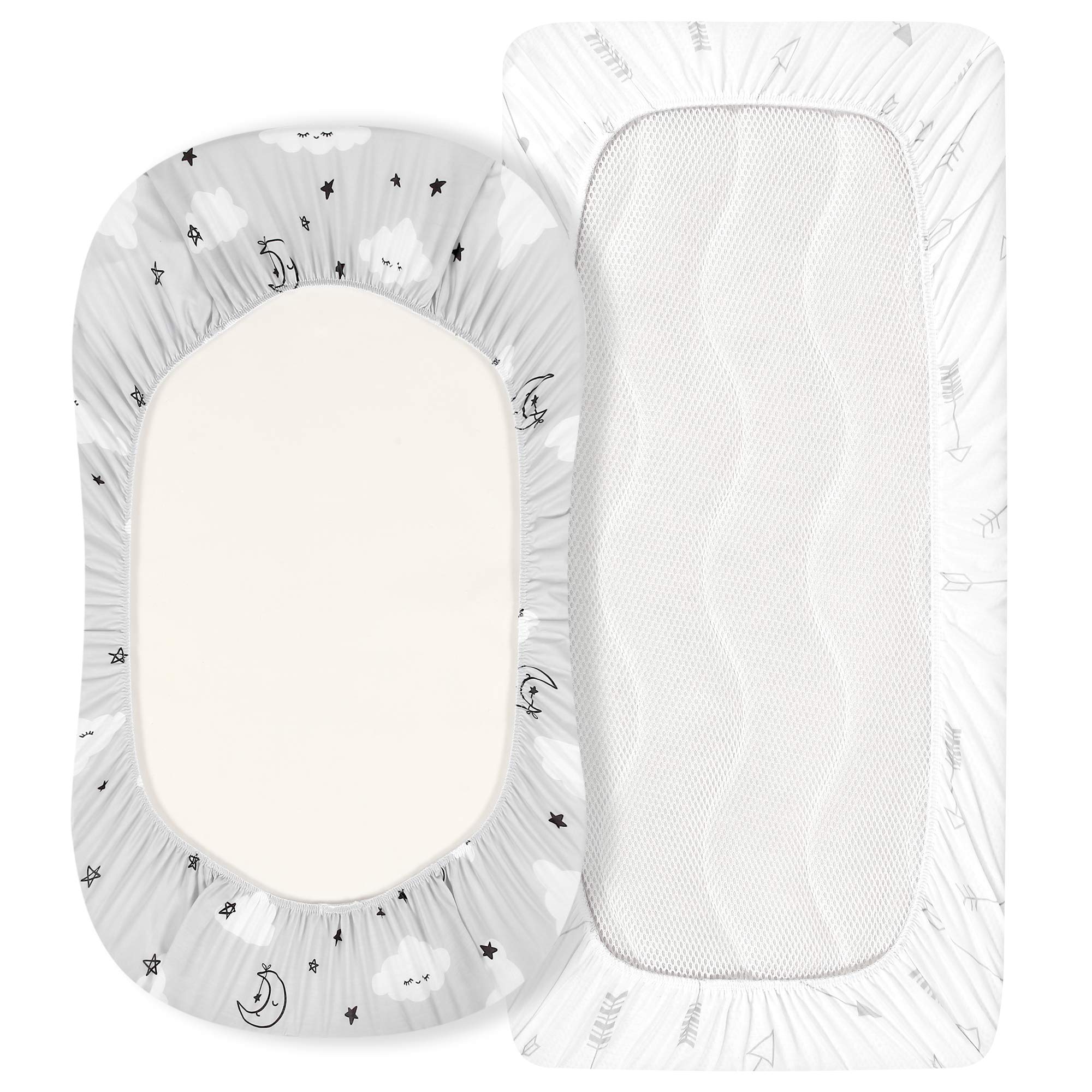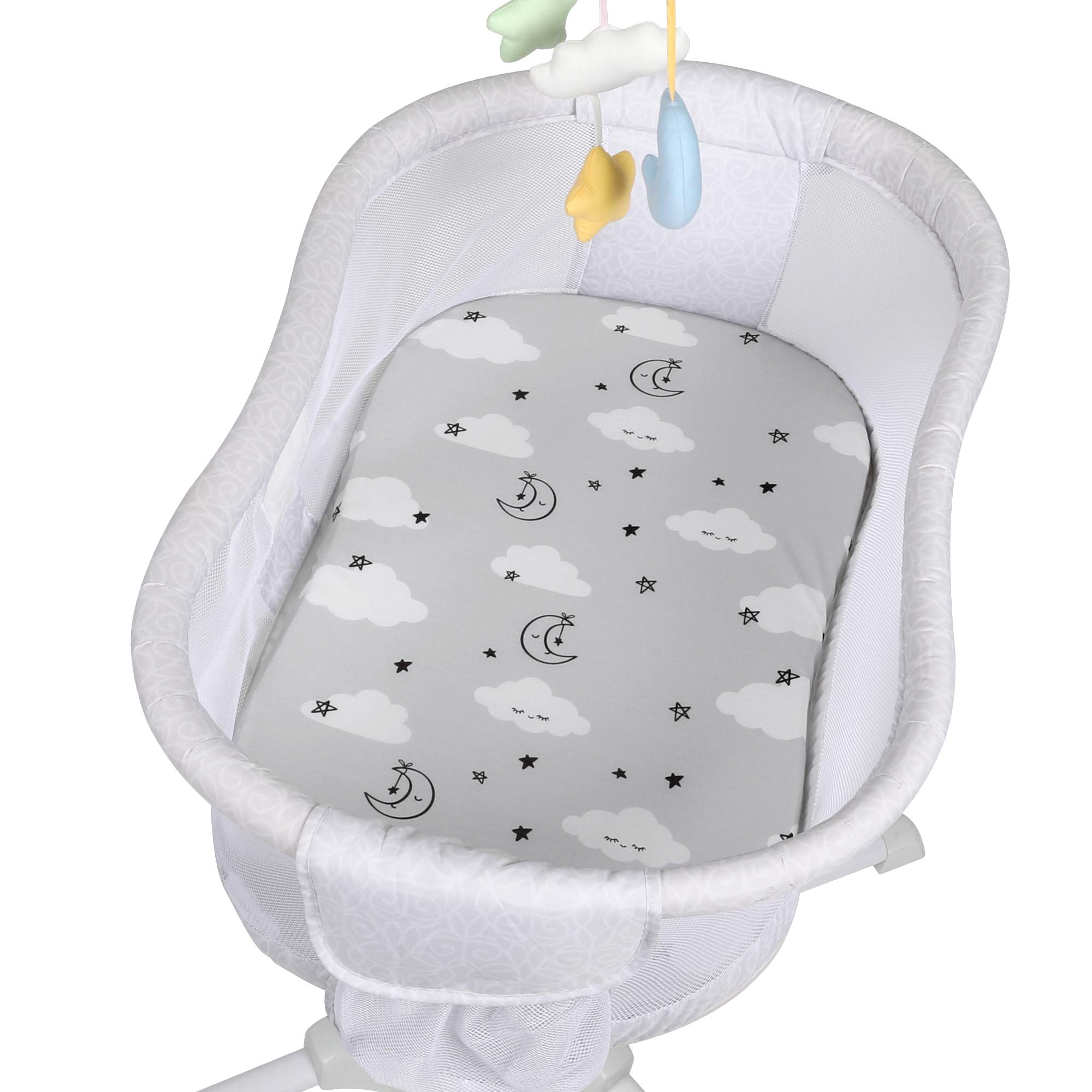 Classic Universal Size: This Bassinet Mattress Sheets have achieve a balance between elasticity and tightness. Stretches and fits oval, round, rectangular, hourglass shaped mattress up to 2.5”. No risk of mattress binding or damage.