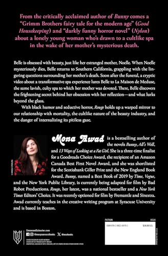 A National Bestseller A USA TODAY Bestseller A New York Times Editors’ Choice A Goodreads Choice Award Finalist Named a Best Book of the Year by The Washington Post, Good Housekeeping, Electric Literature, Tor,and Literary Hub From the critically acclaimed author of Bunny comes a “Grimm Brothers fairy tale for the modern age” (Good Housekeeping) and “darkly funny horror novel” (NYLON) about a lonely young woman who’s drawn to a cult-like spa in the wake of her mother’s mysterious death. “Surreal, scary and deeply moving—like all the best fairy tales” (People). A Most Anticipated Book of 2023 by Time, Vogue, The Guardian, Goodreads, Bustle, The Millions, LitHub, Tor, Good Housekeeping, and more! For as long as she can remember, Belle has been insidiously obsessed with her skin and skincare videos. When her estranged mother Noelle mysteriously dies, Belle finds herself back in Southern California, dealing with her mother’s considerable debts and grappling with lingering questions about her death. The stakes escalate when a strange woman in red appears at the funeral, offering a tantalizing clue about her mother’s demise, followed by a cryptic video about a transformative spa experience. With the help of a pair of red shoes, Belle is lured into the barbed embrace of La Maison de Méduse, the same lavish, culty spa to which her mother was devoted. There, Belle discovers the frightening secret behind her (and her mother’s) obsession with the mirror—and the great shimmering depths (and demons) that lurk on the other side of the glass. Snow White meets Eyes Wide Shut in this surreal descent into the dark side of beauty, envy, grief, and the complicated love between mothers and daughters. With black humor and seductive horror, Rouge explores the cult-like nature of the beauty industry—as well as the danger of internalizing its pitiless gaze. Brimming with California sunshine and blood-red rose petals, Rouge holds up a warped mirror to our relationship with mortality, our collective fixation with the surface, and the wondrous, deep longing that might lie beneath.