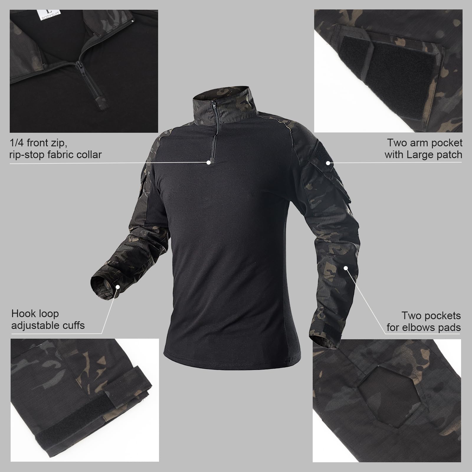 【Package Contains】Tactical Como Pants + Shirt + Cap + Gloves + Balaclava Mask. A set of airsoft gear.