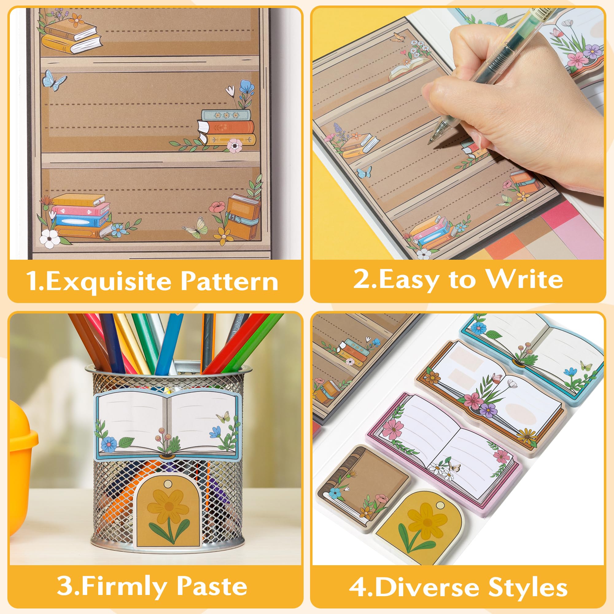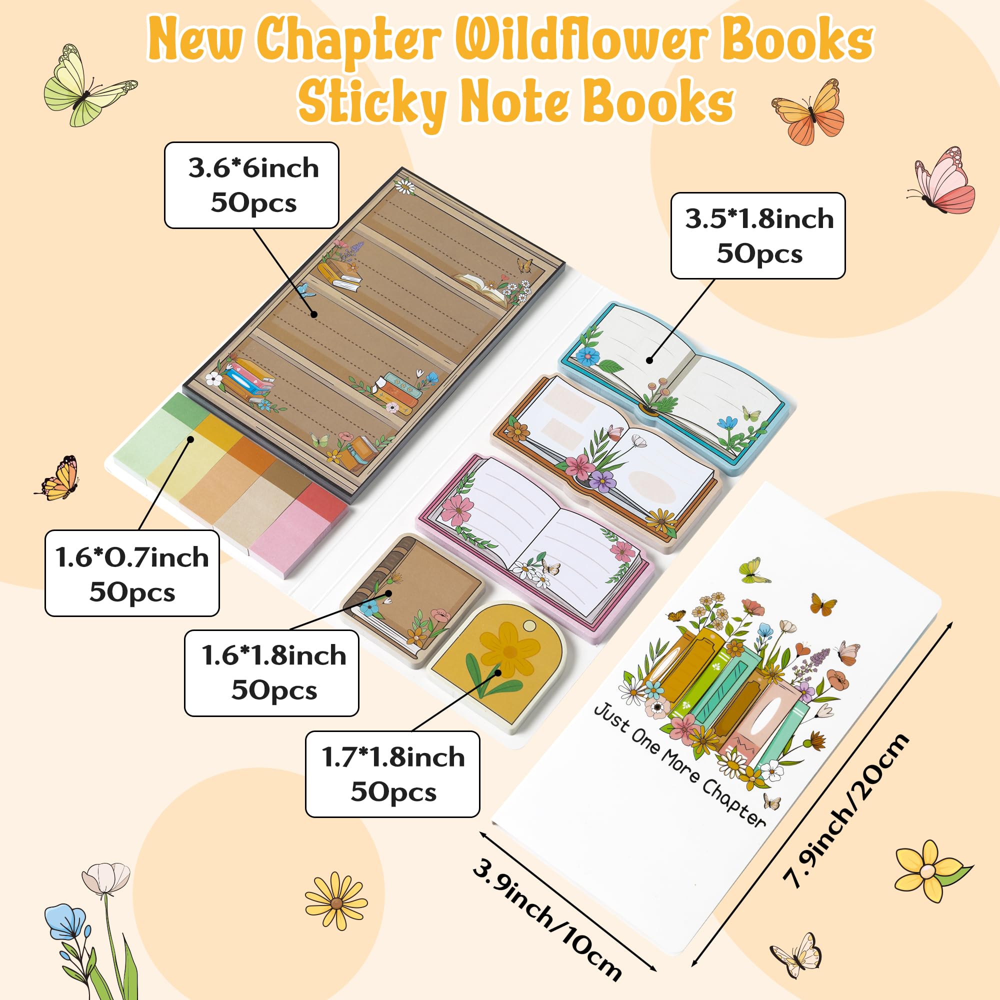 Book Lovers Sticky Notes: You will get dotted line sticky notes, separated tab sticky notes and 5 types of wildflower shaped sticky notes. There are 50 sheets of each type for a total of 550 sheets, enough for all your needs