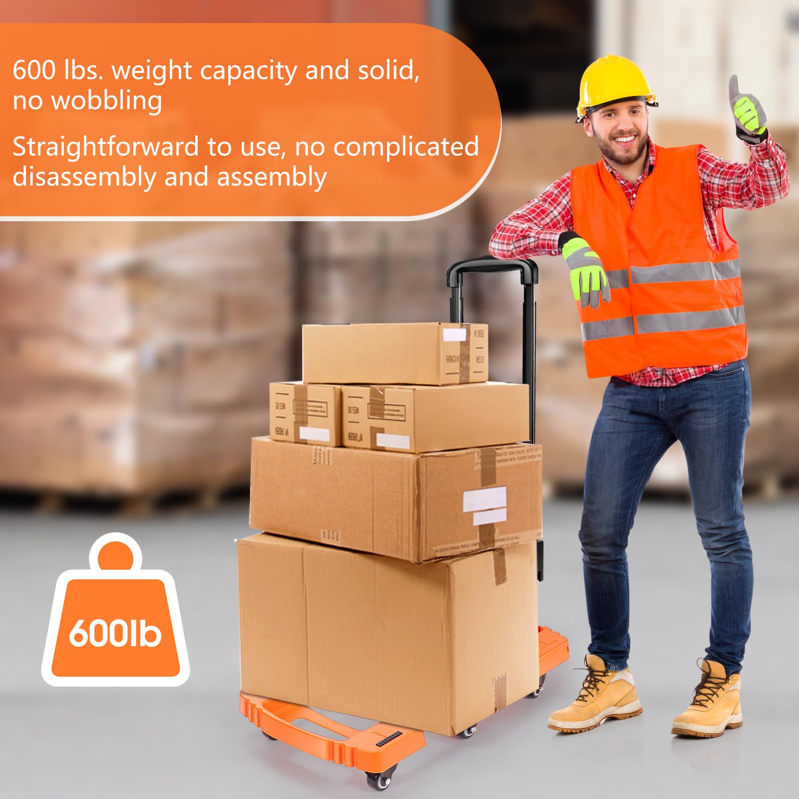 **Portable and Convenient**: Weighing just 6.5LBS, Voipvvii hand truck is lightweight and foldable, ensuring effortless storage and transport. Ideal for frequent movers, travelers or those with limited space