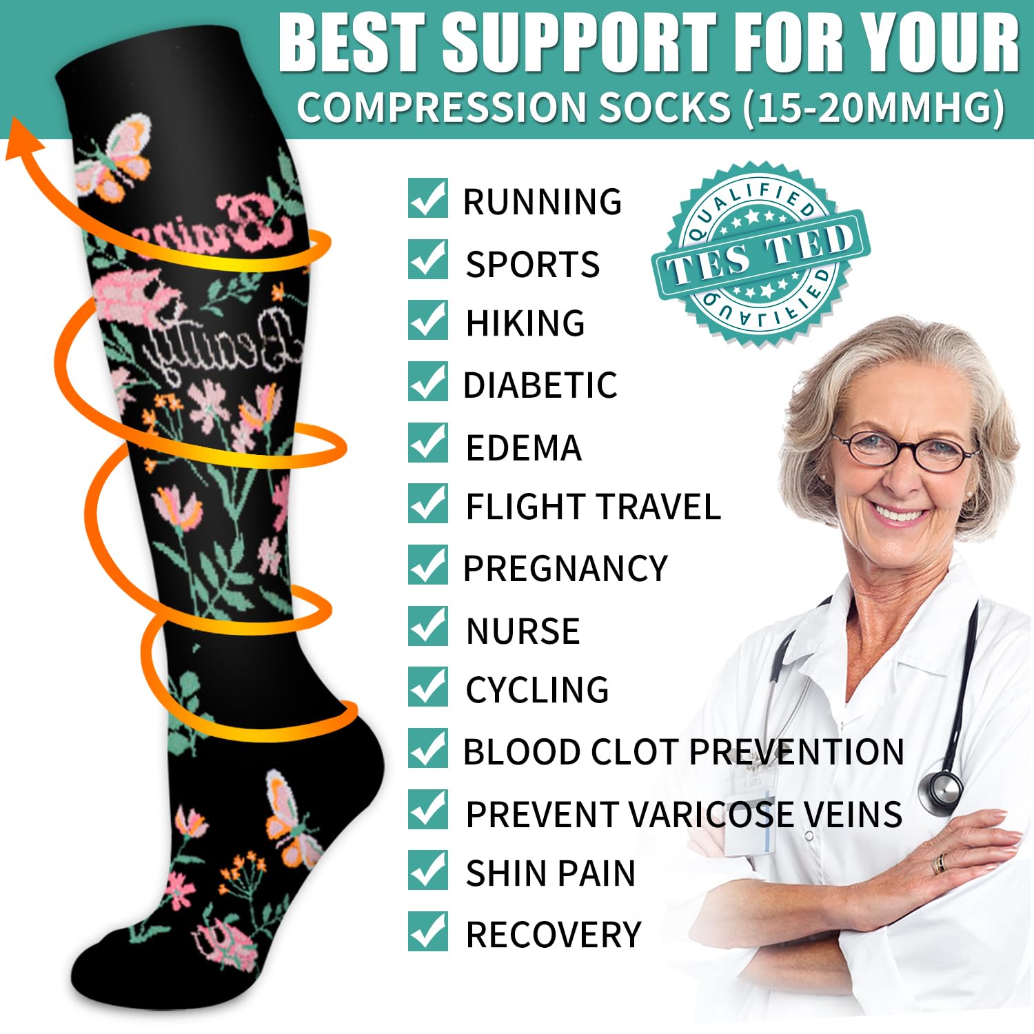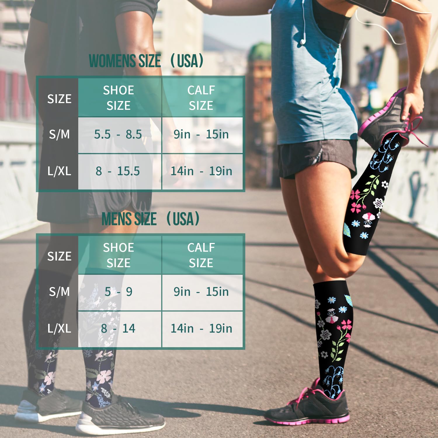 PERFECT FOR EVERYONE-Ours premium compression socks for all your favorite activities.These socks will keep doing their job while you focus on your daily routine,whether you're driving the kids,running around for meetings at work,doing chores at home,or doing anything else at all. everyone can benefit from the power of compression to feel their best and conquer their day, every day.Our socks perfect for everyone regardless of age,gender and location!