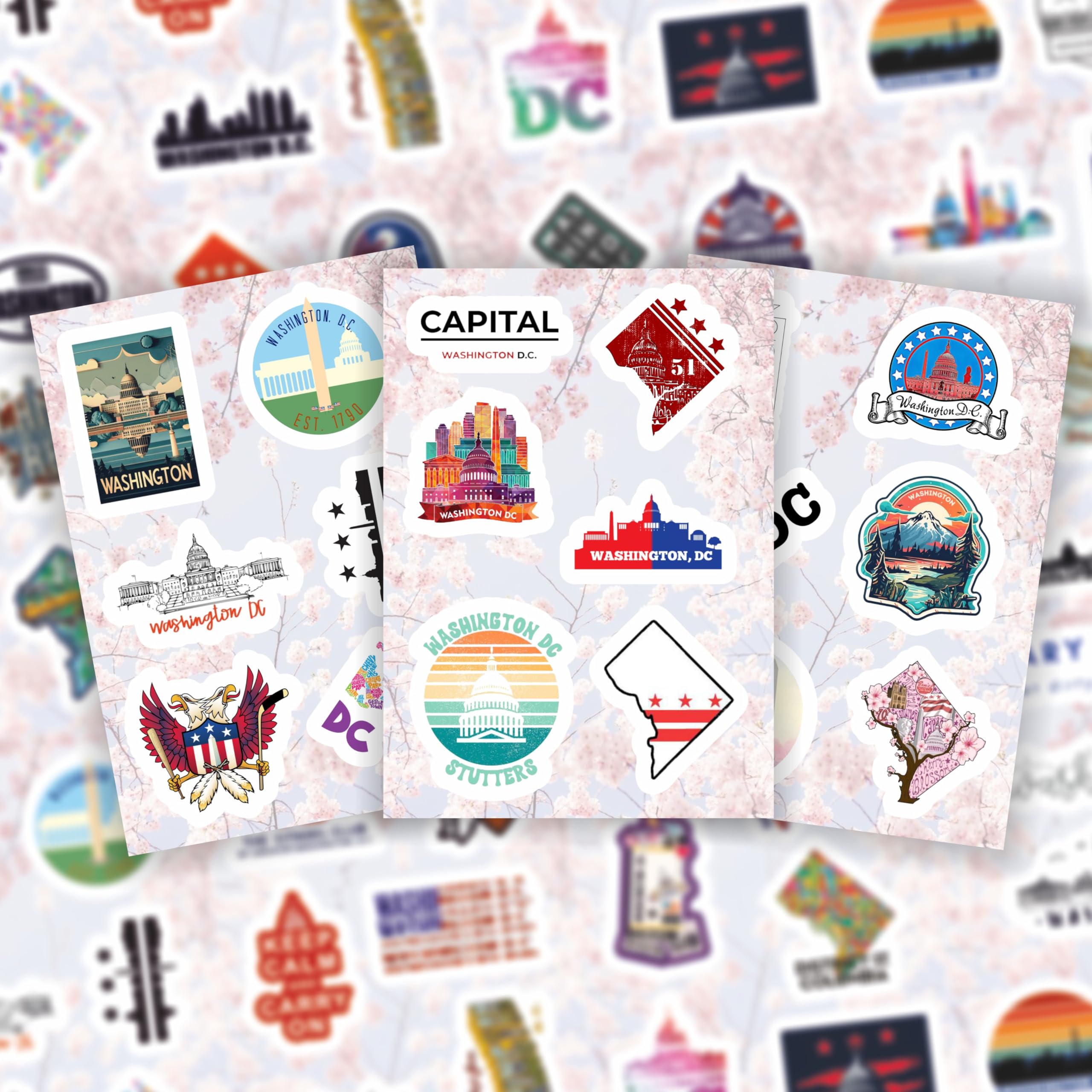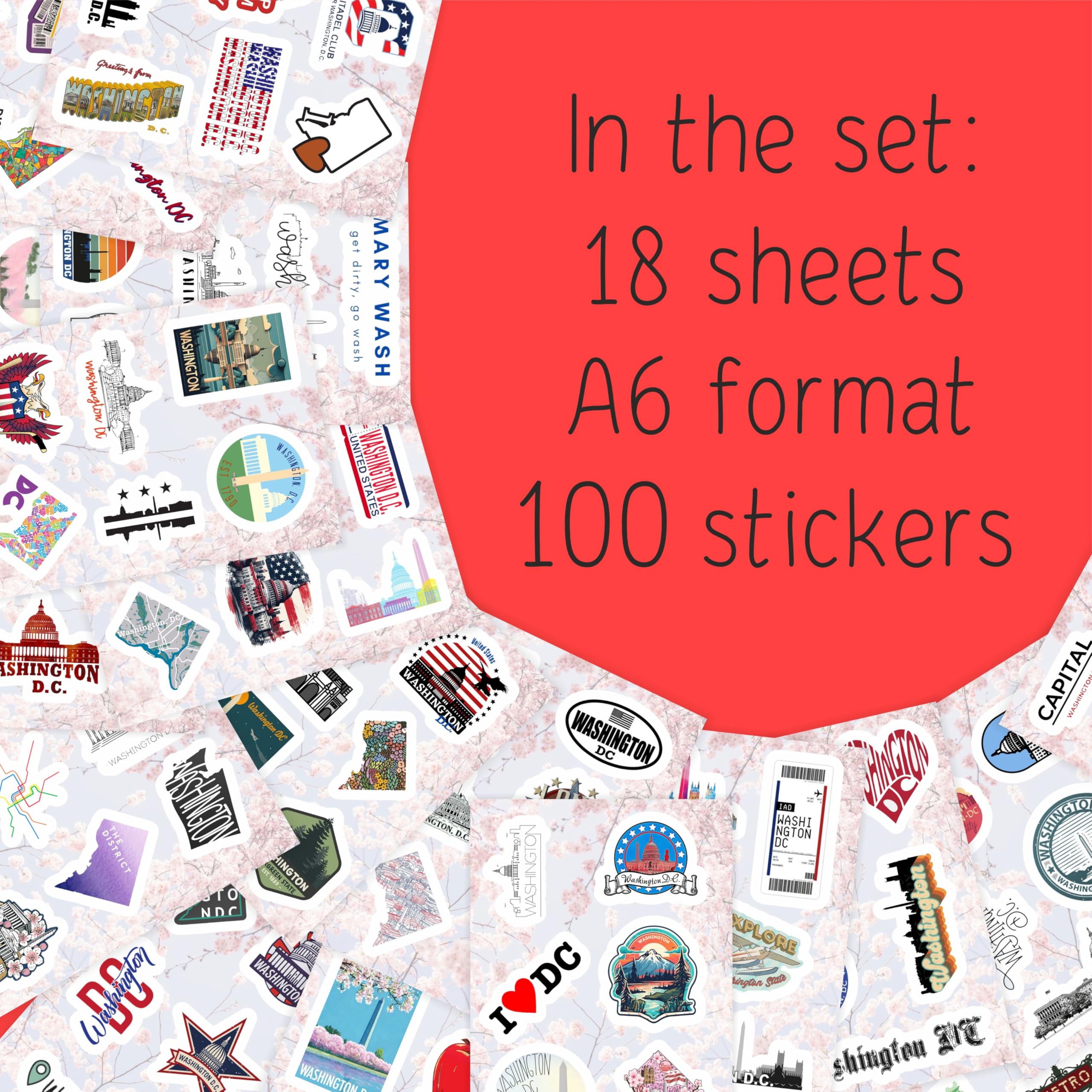 STICKER SHEETS - Washington Dc sticker pack contains several sheets. Sticker sheets are less likely to get damaged or bent compared to loose, cut-out stickers.