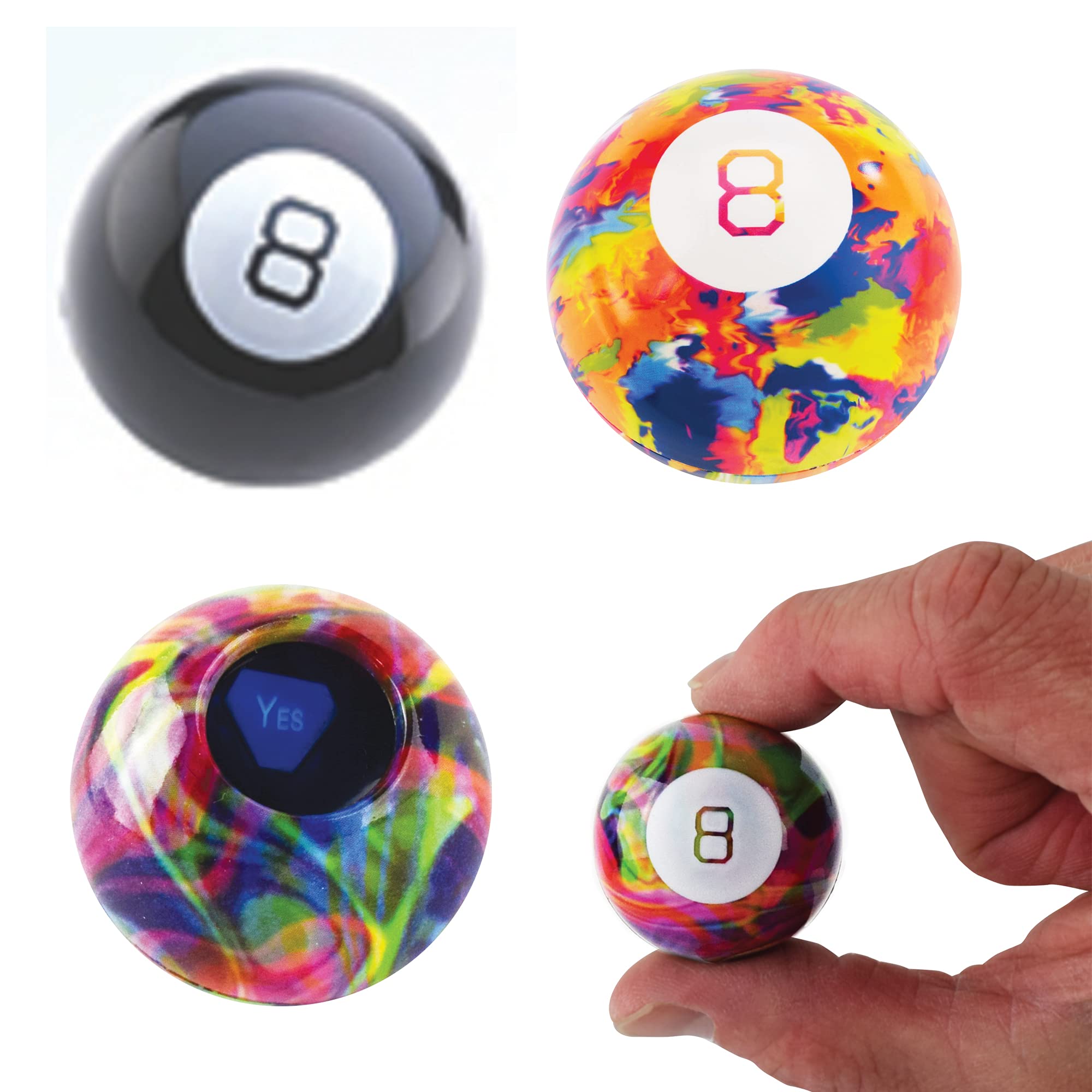 Set includes (2) World's Smallest Magic 8 Ball toys. Classic and Tye Dye. Recommended for ages 8 and up.