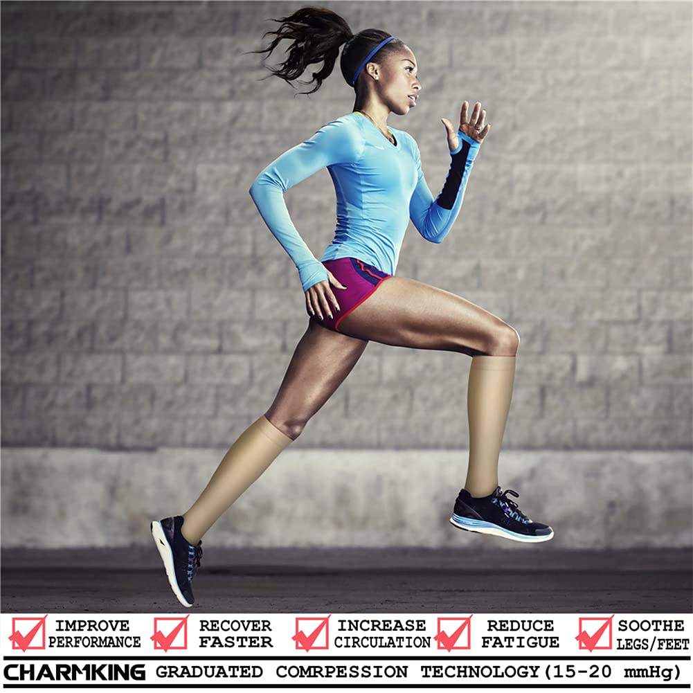 COMFORTABLE MATERIAL AND CAREFUL CONSTRUCTION - CHARMKING knee high compression socks' material are upgraded with nylon percentage from 40% to 85%, Delivers 360-degree stretch for greater flexibility and durability. Breathable high performance fabric keeps an optimal temperature. We are confident that you will choose it!