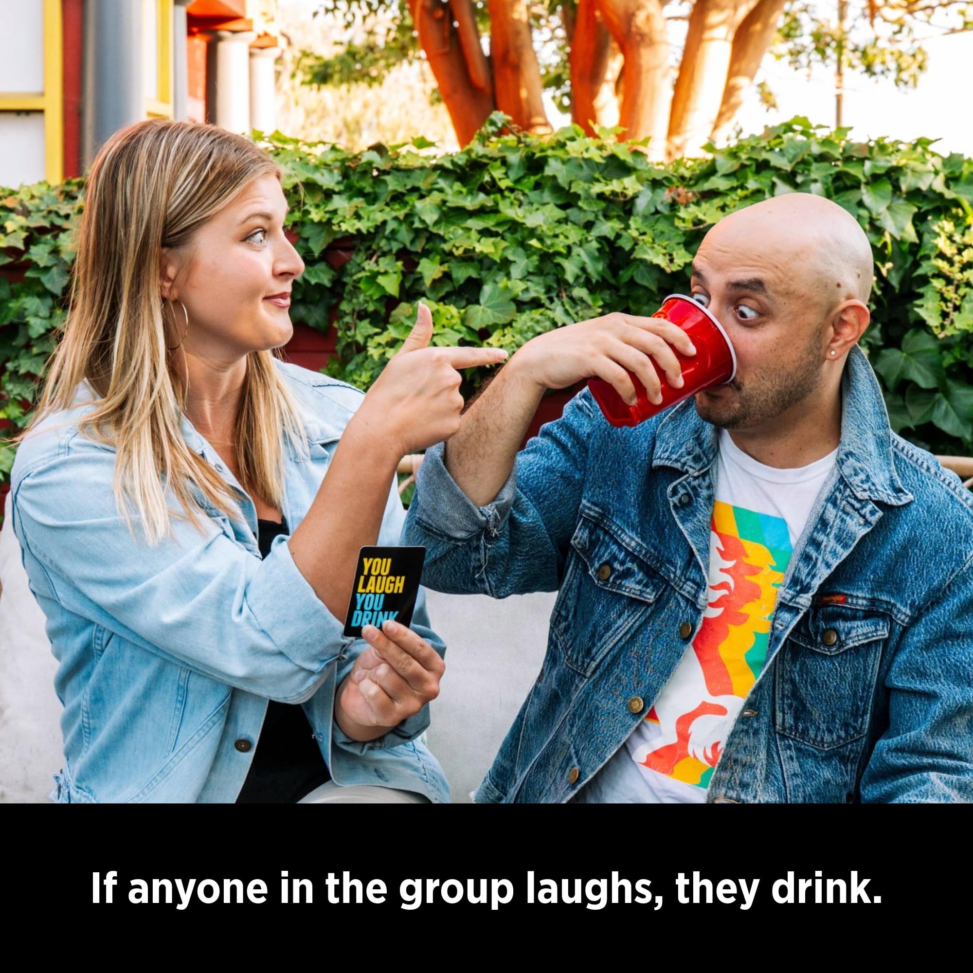 You Laugh You Drink, the drinking game for people who can’t keep a straight face. This party game is the ultimate try not to laugh challenge. Can you make your friends laugh?