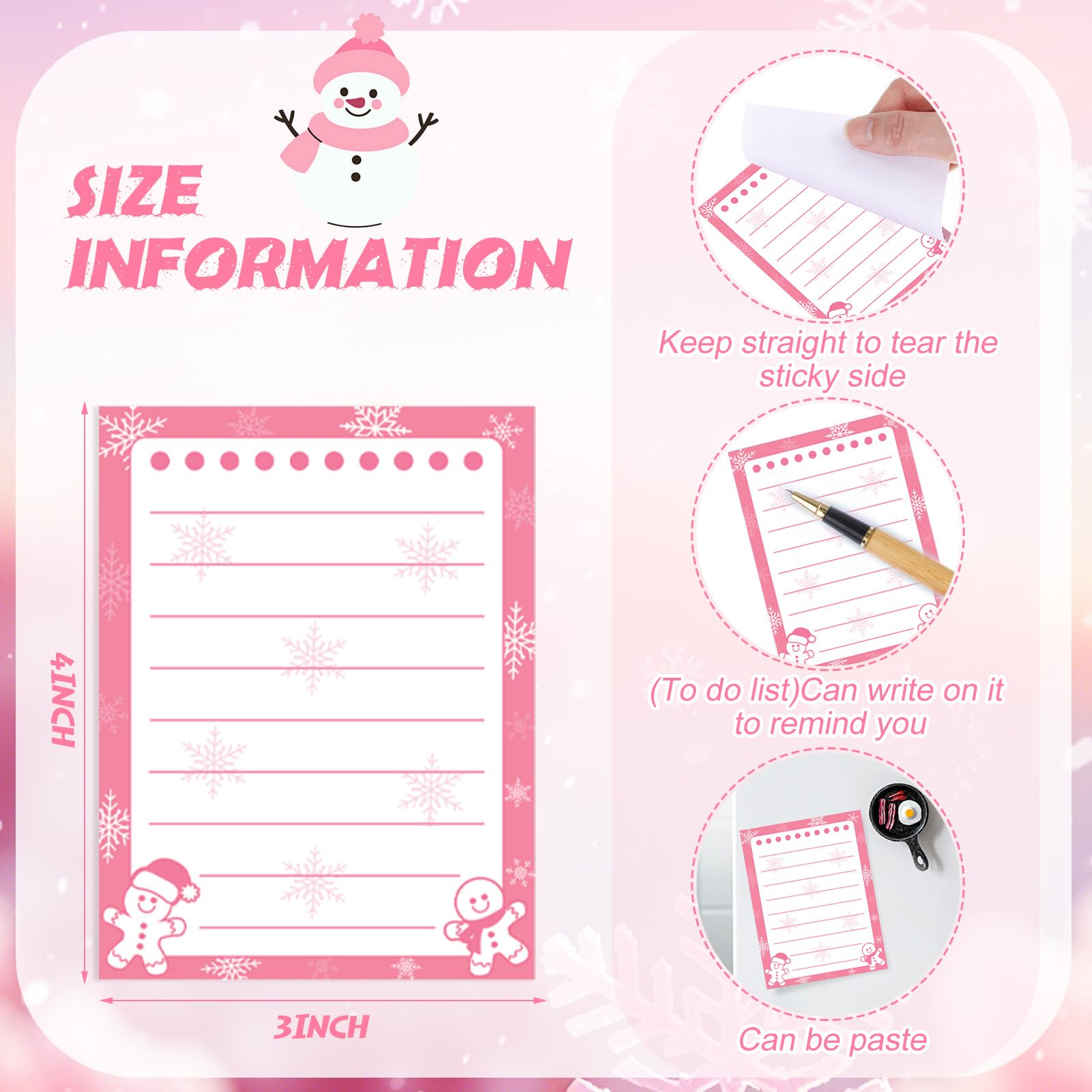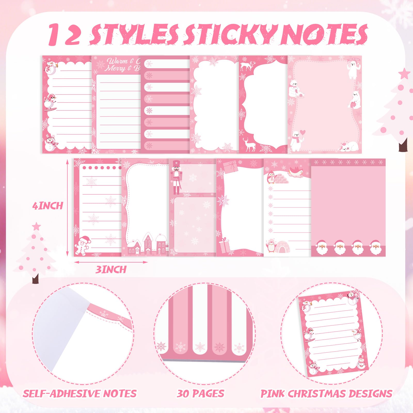 Sufficient Quantity: you will receive 12 pieces of pink Christmas themed sticky notes, packaged with 30 pages each, for a total of 360 sheets; The dimensions are a handy 3x4 inches /7.6x10 cm, enough quantity and rich design to meet your various needs and replacements