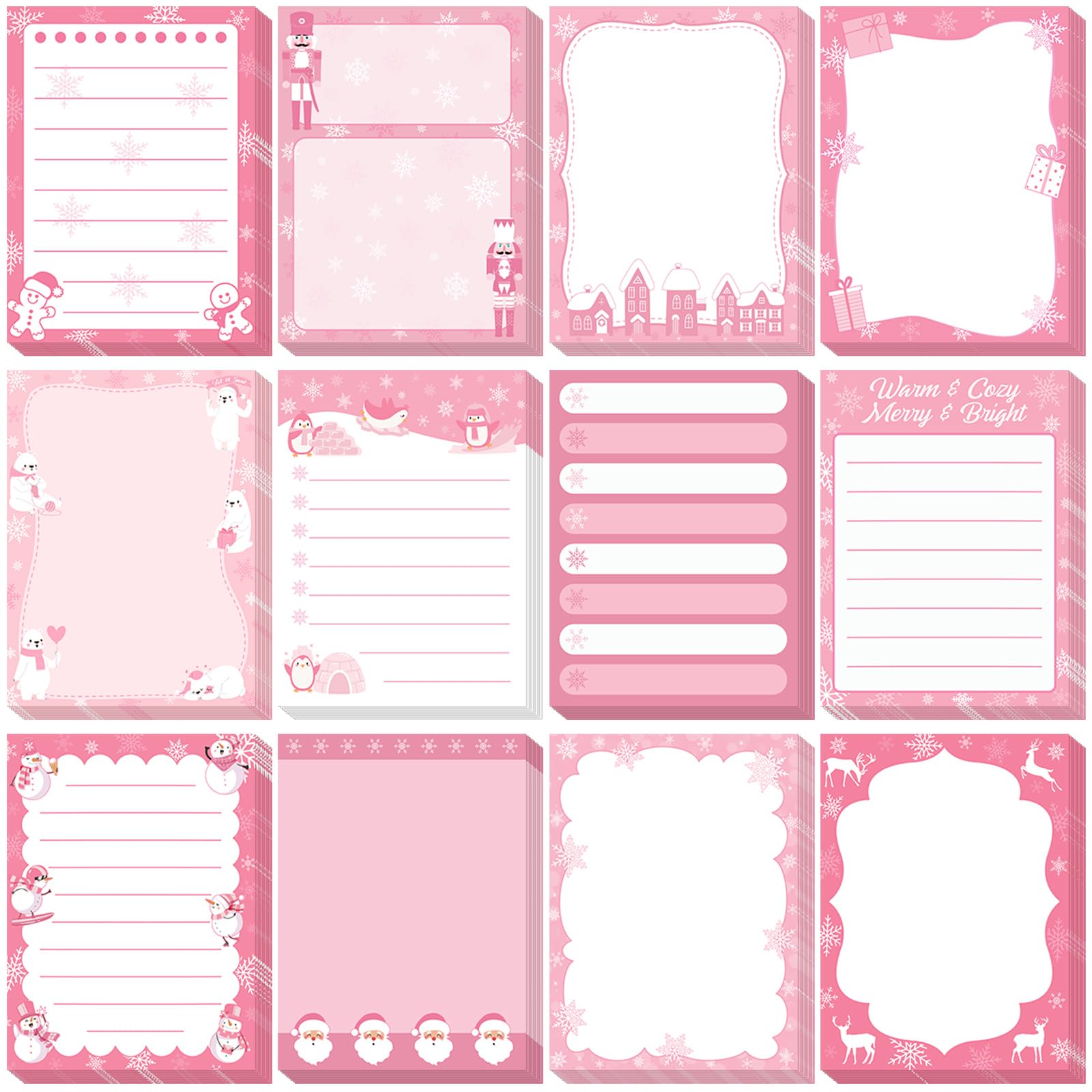 Pink Christmas Design: these pink notepads are designed with cute Christmas patterns, including Santa Claus, snowflakes, nutcrackers, snowmen and other classic Christmas elements, elegant and beautiful, with bright colors, adding a festive and cheerful atmosphere to your holiday