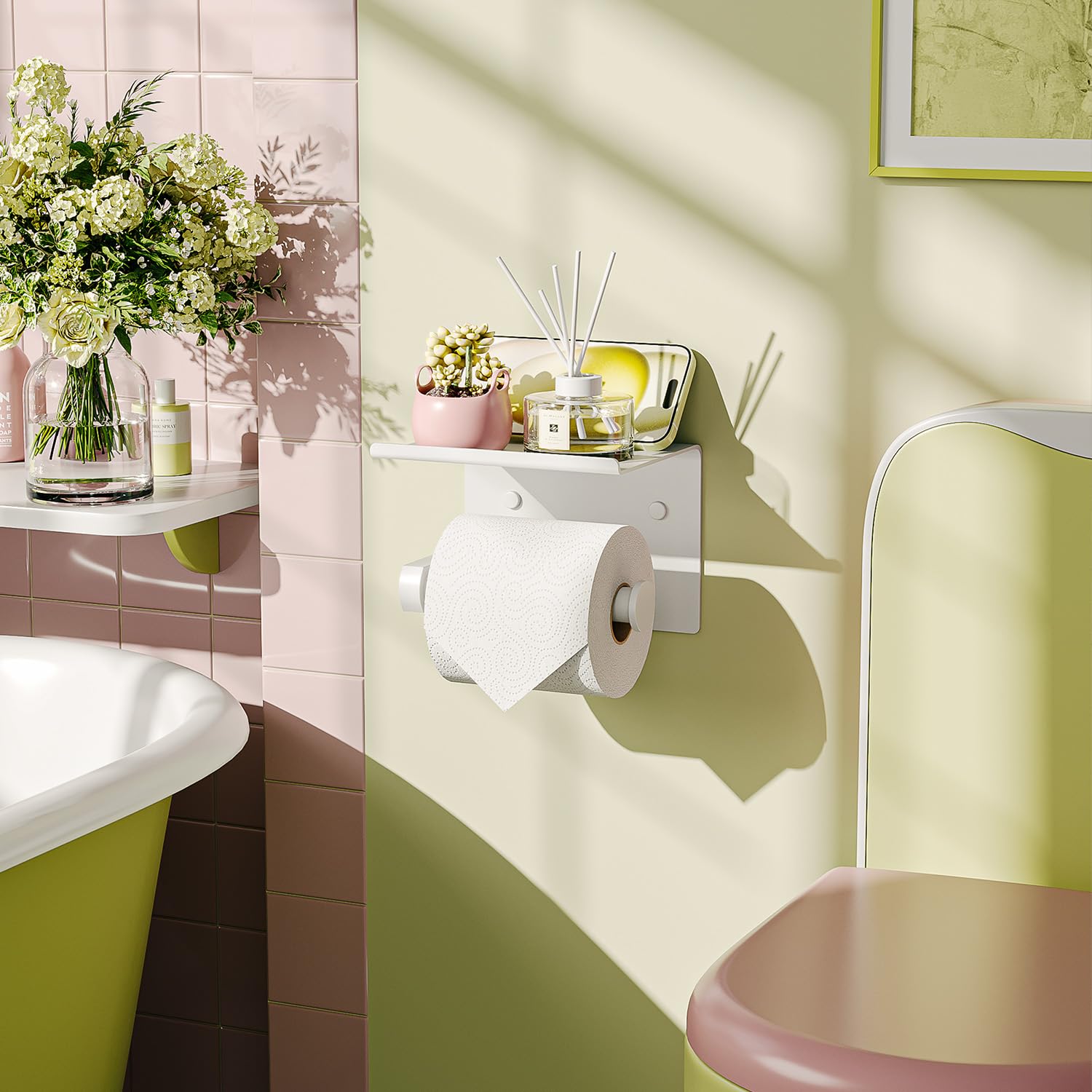 MODERN & STYLISH DESIGN: White painted, waterproof, rust-proof and corrosion resistant, bathroom toilet paper holder fits a variety of home decor style, add modern home atmosphere and save your efforts from organizing bathroom and kitchen. Standard process builds delicate finish that is beautiful and long lasting.