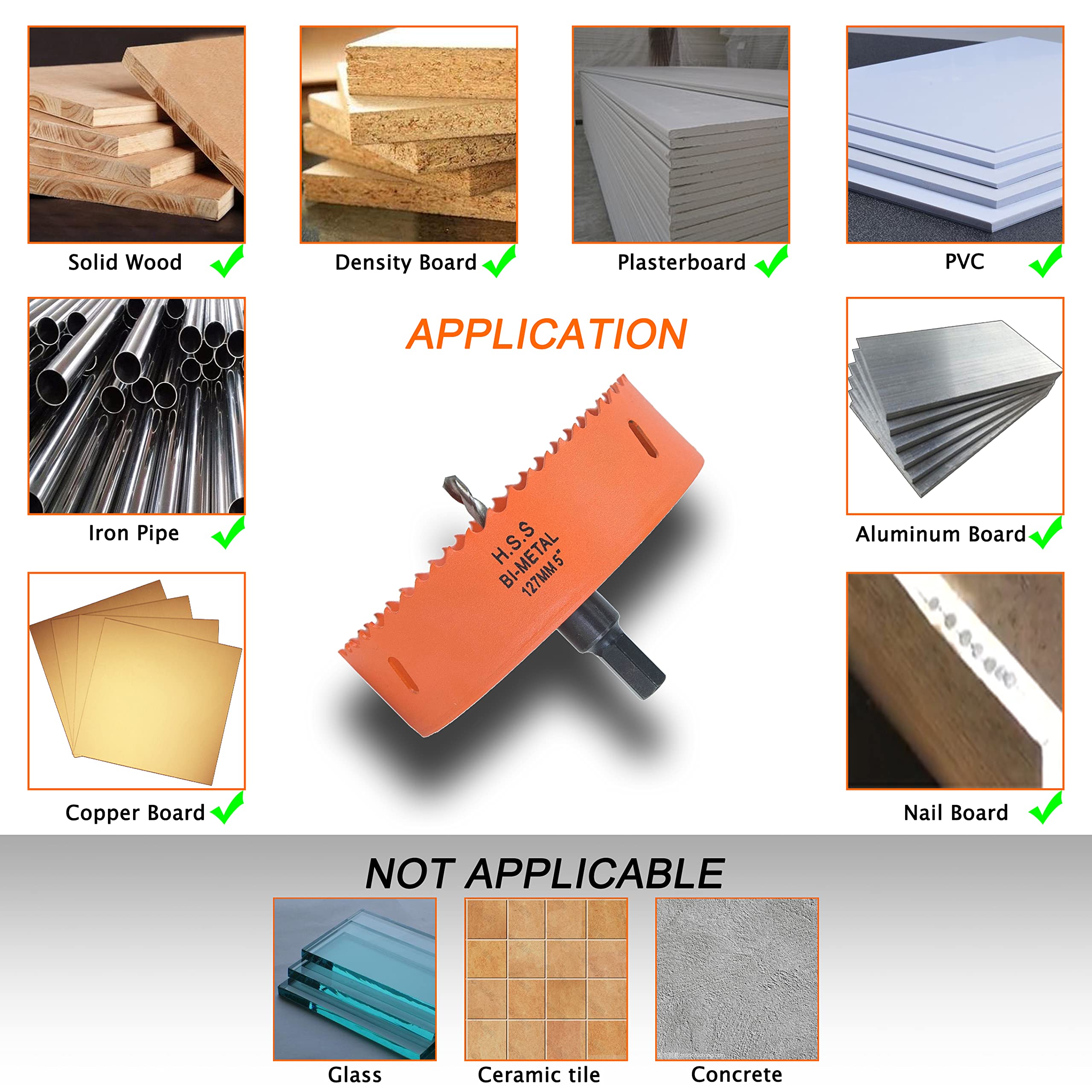 Wide Application: The hole saw can be widely used for cutting thin metals, wood, plater board, plywood, duct, drywall, soft plaster, corn hole boards and plastic, good enough for the average DIYer and professional project