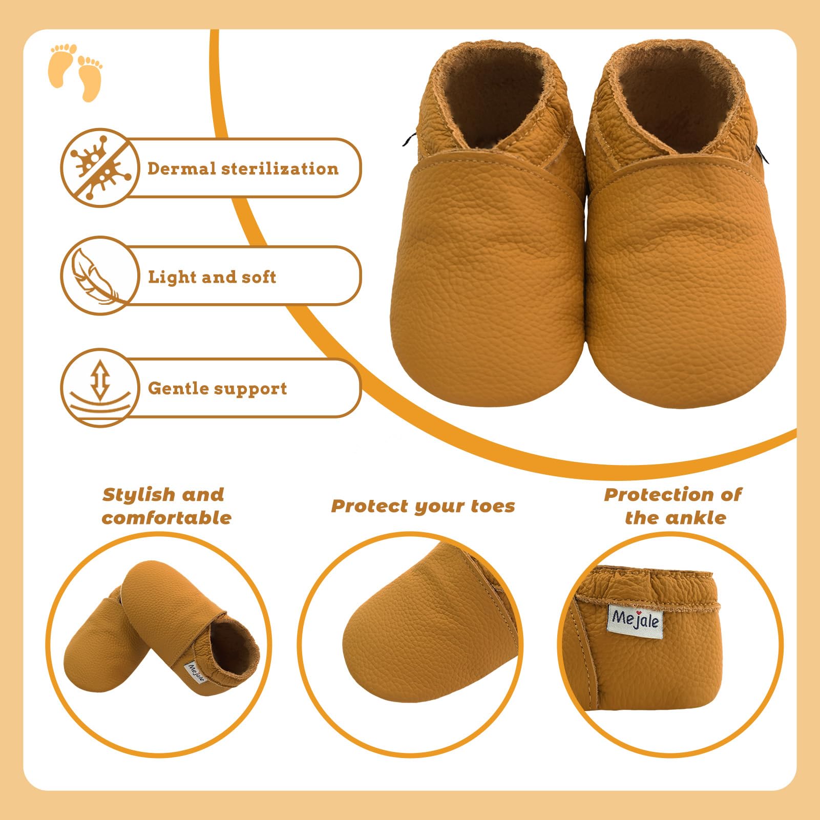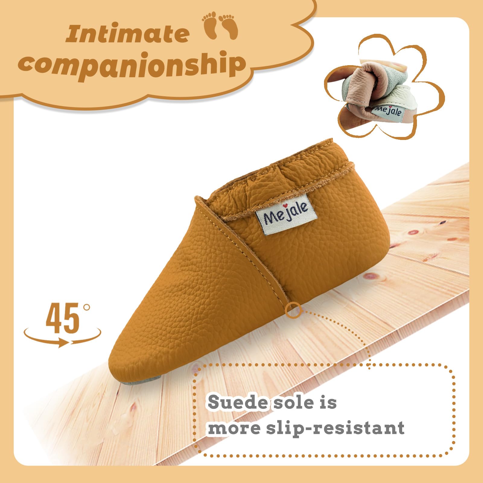 ♥Made of genuine soft Leather, slip-on shoes with elastic ankle, great shoes between a sock and a shoe for beginning crawlers and walkers. The moccasins soft leather can protect the baby's feet and enable them to learn to walk in a positive and natural manner
