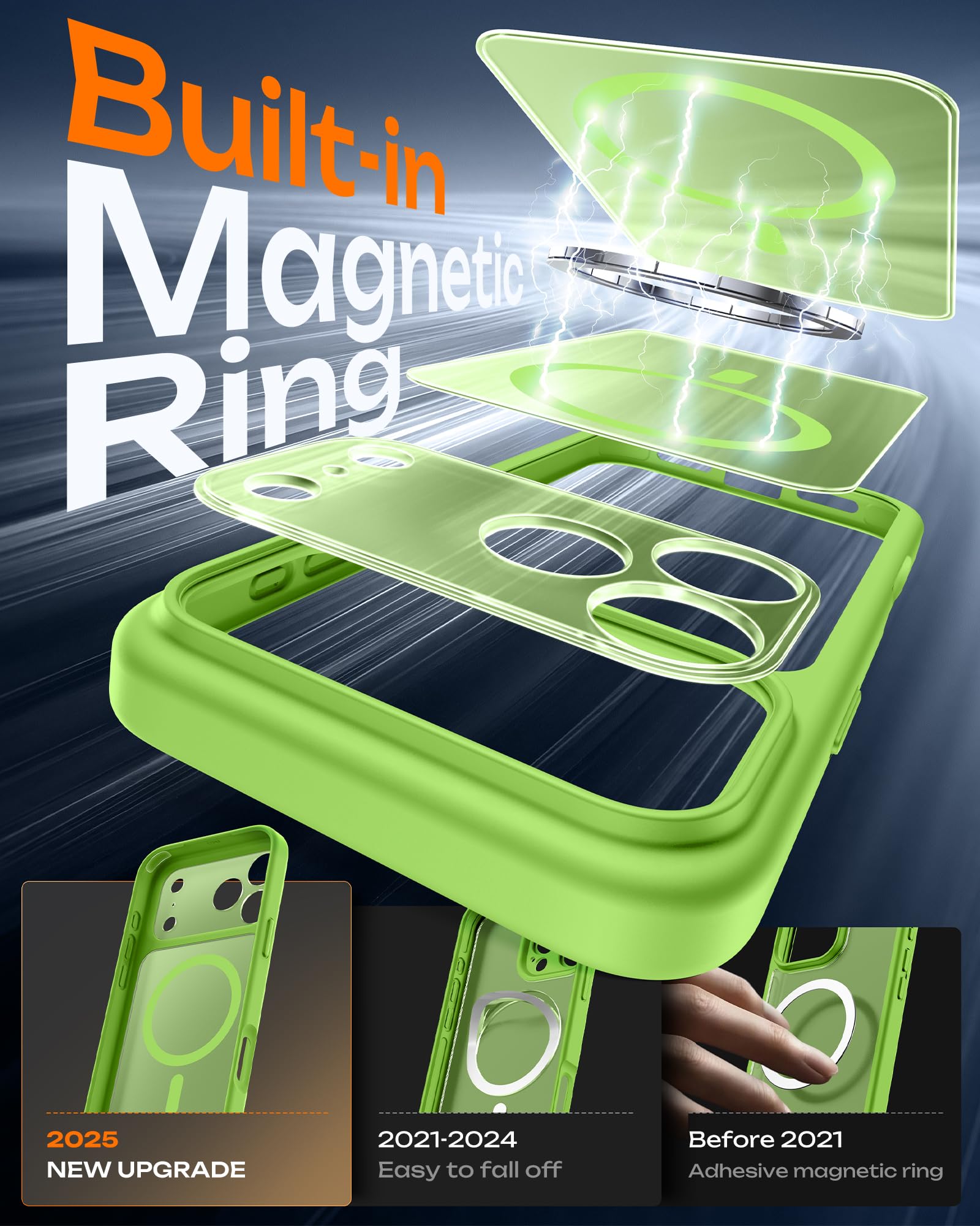 Embedded Magnetic Ring:Upgraded for iPhone 17 Pro Max Magnetic Case. Built-in magnetic ring never falls off. 18N ultra-strong power, perfect for all your Mag accessories. It holds up well on your Mag car mount, even over strong bumps