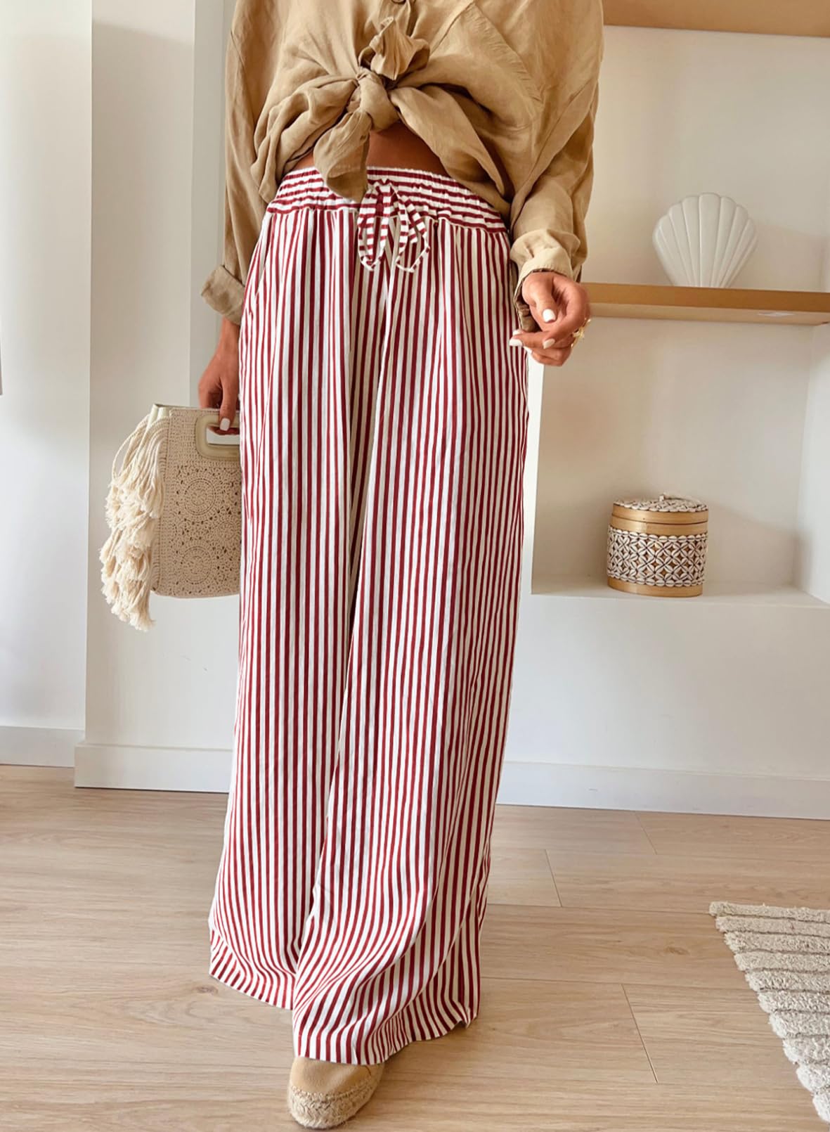 Comfortable Fit: High-waisted design with an elastic drawstring ensures a comfortable, adjustable fit for all body types