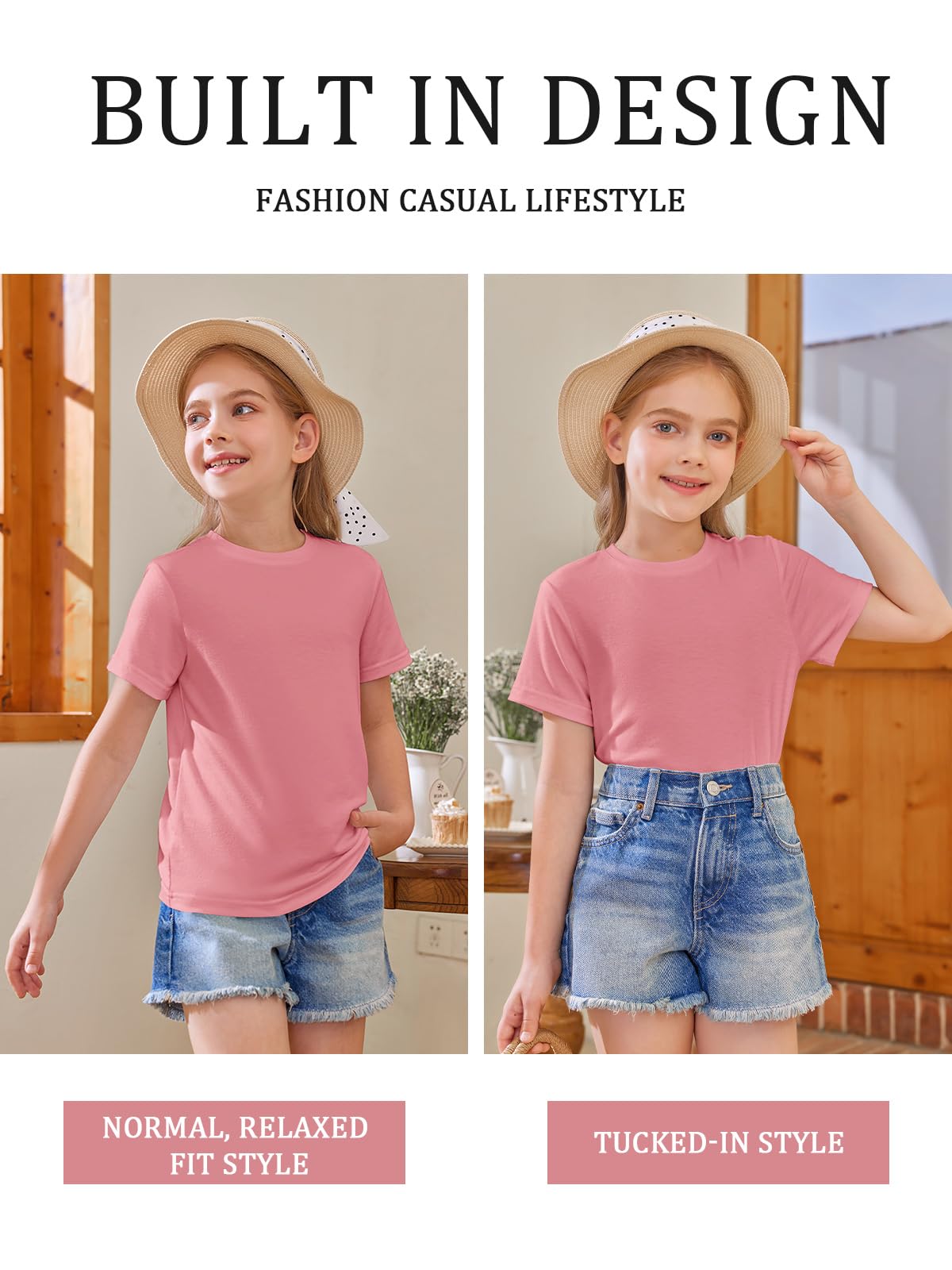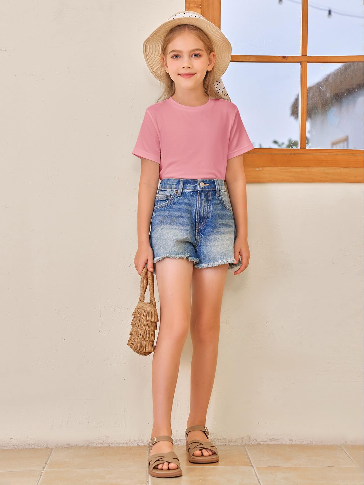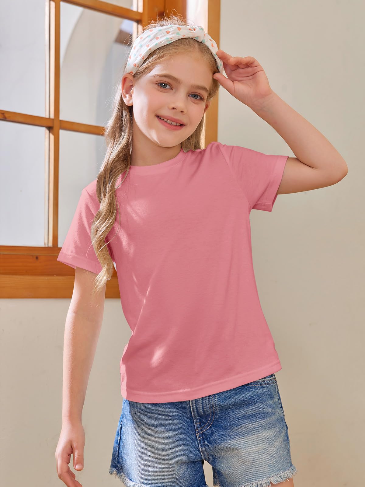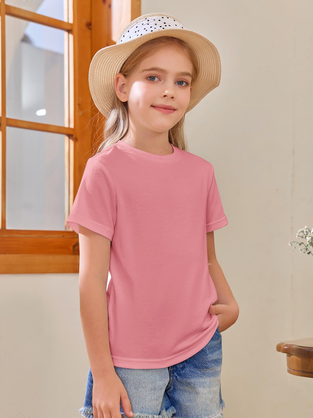Design: Girls summer t-shirt, casual solid color tee tops, classic round neck and regular length, ,it's a good choice for slim kids.The loose fit provides a comfortable fit for ease of wear and movement. Don't worry about showing your belly when you play