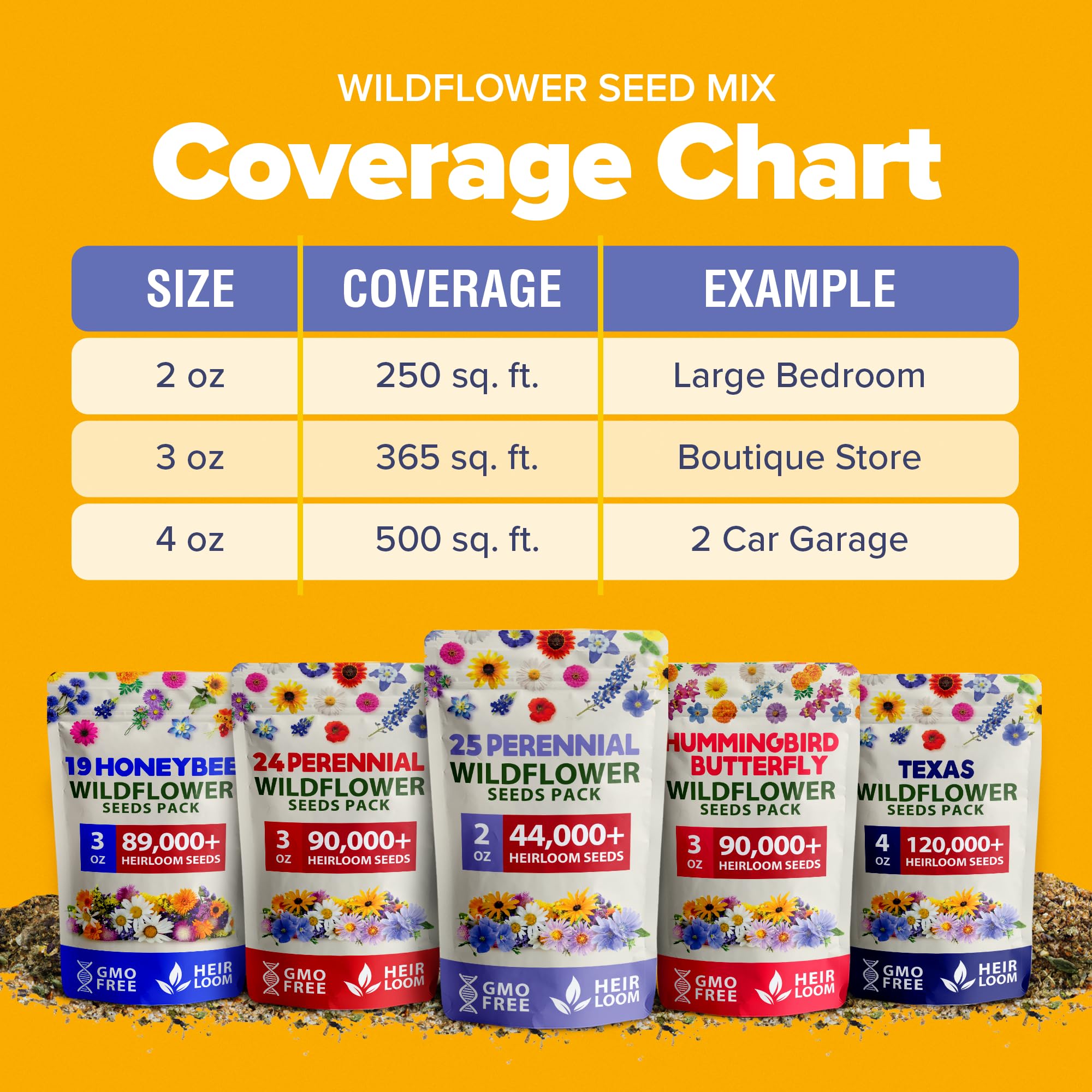 Easy Growing Success: Quick sprouting wildflower seeds grow 24-36 inches tall; Ideal for full sun to partial shade areas; Drought tolerant varieties included; Perfect for both beginner and experienced gardeners; Comprehensive planting guide included