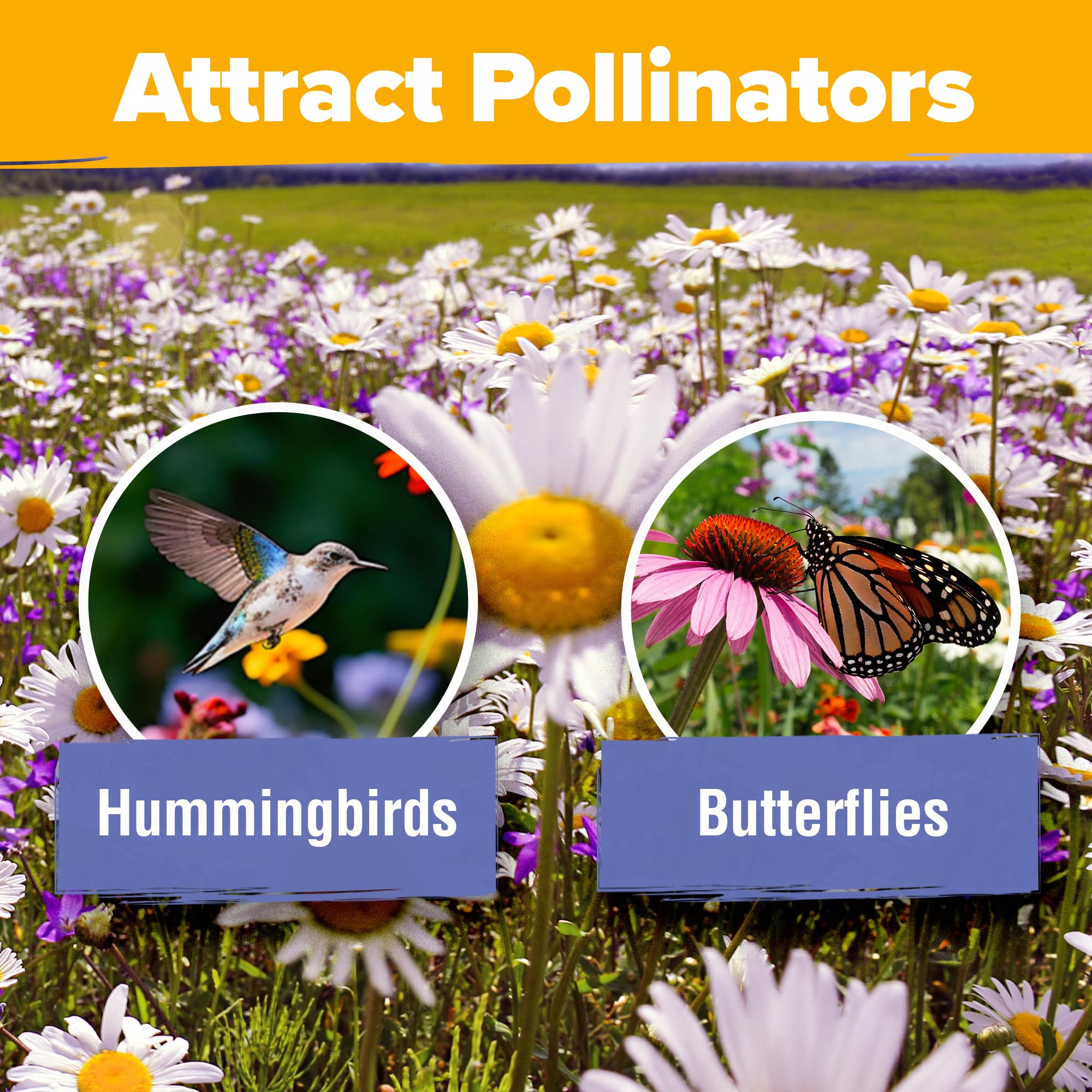 Pollinator Paradise: Attract butterflies, bees, and hummingbirds with this specially formulated wildflower seed mix; Creates vital habitat for native pollinators; Supports ecosystem health; Perfect for butterfly gardens and wildlife areas