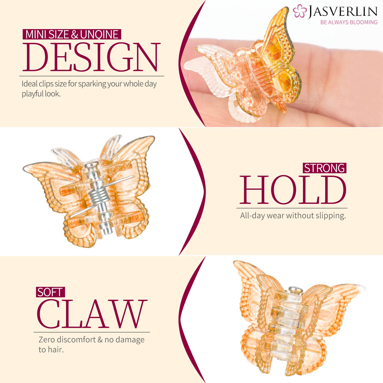 Stunning Gradient Hues: JASVERLIN offers ten radiant, gradient colors in our butterfly hairclip set, with five clips per color. These assorted colors cater to all hair shades, inspiring a fresh hairstyle, outfit, and makeup look daily