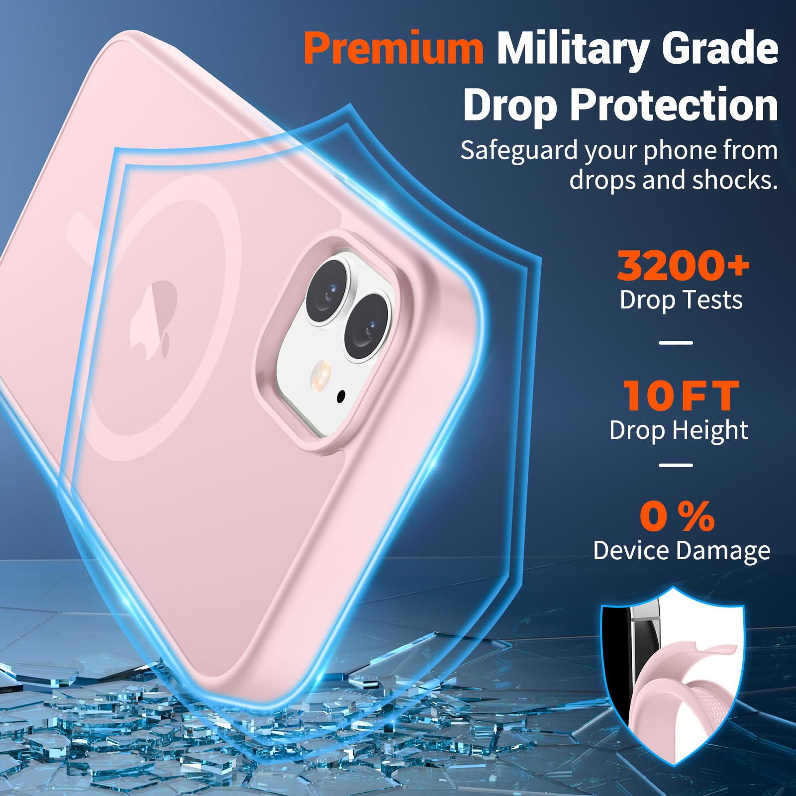 Shock Protection: Passing military drop tests up to 10 feet, your device is effectively protected from violent impacts and drops