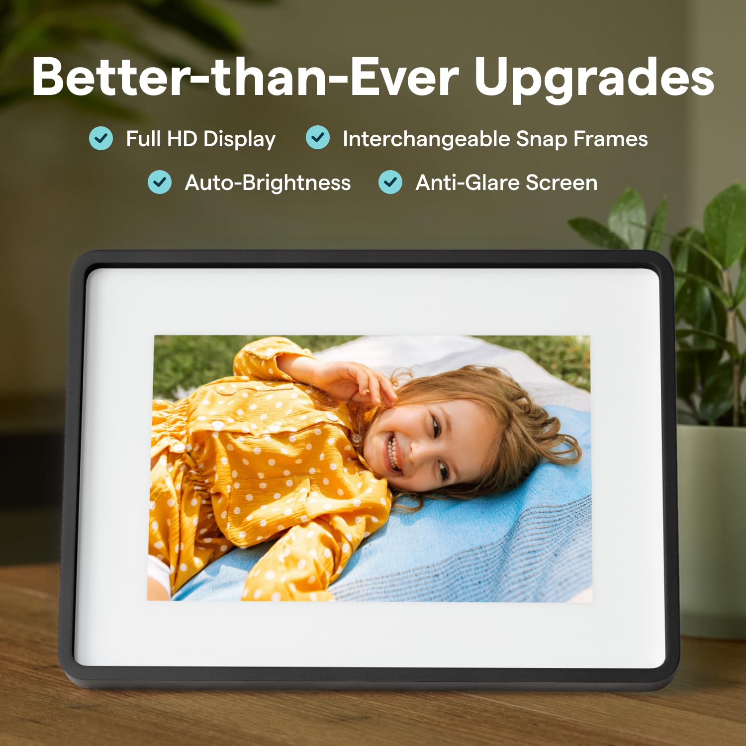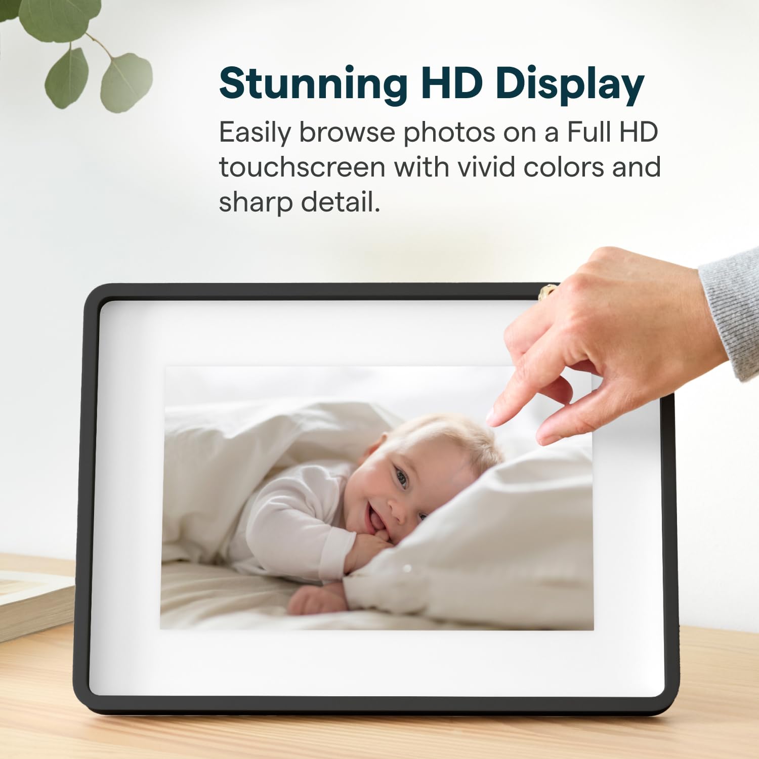 FULL HD SCREEN WITH AUTO-BRIGHTNESS & ANTI-GLARE: Enjoy a stunning 10-inch Full HD (1920x1200) touch screen photo frame with auto-brightness that adapts to various lighting conditions, while the anti-glare coating ensures clear, sharp visuals in any room, day or night.