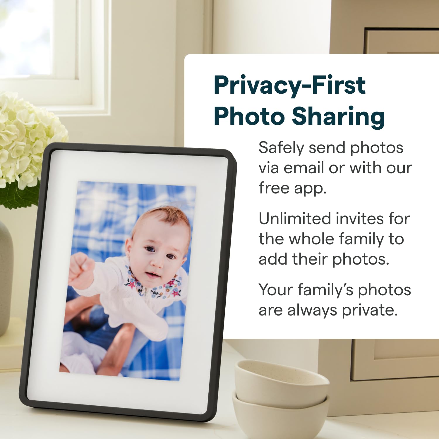 UPLOAD PHOTOS AND VIDEOS INSTANTLY: Easily share photos and videos directly from your phone to the digital frame, turning it into a vibrant photo display. It's the ideal photo gift for any occasion. Stay connected with loved ones by sending special memories, no matter the distance.