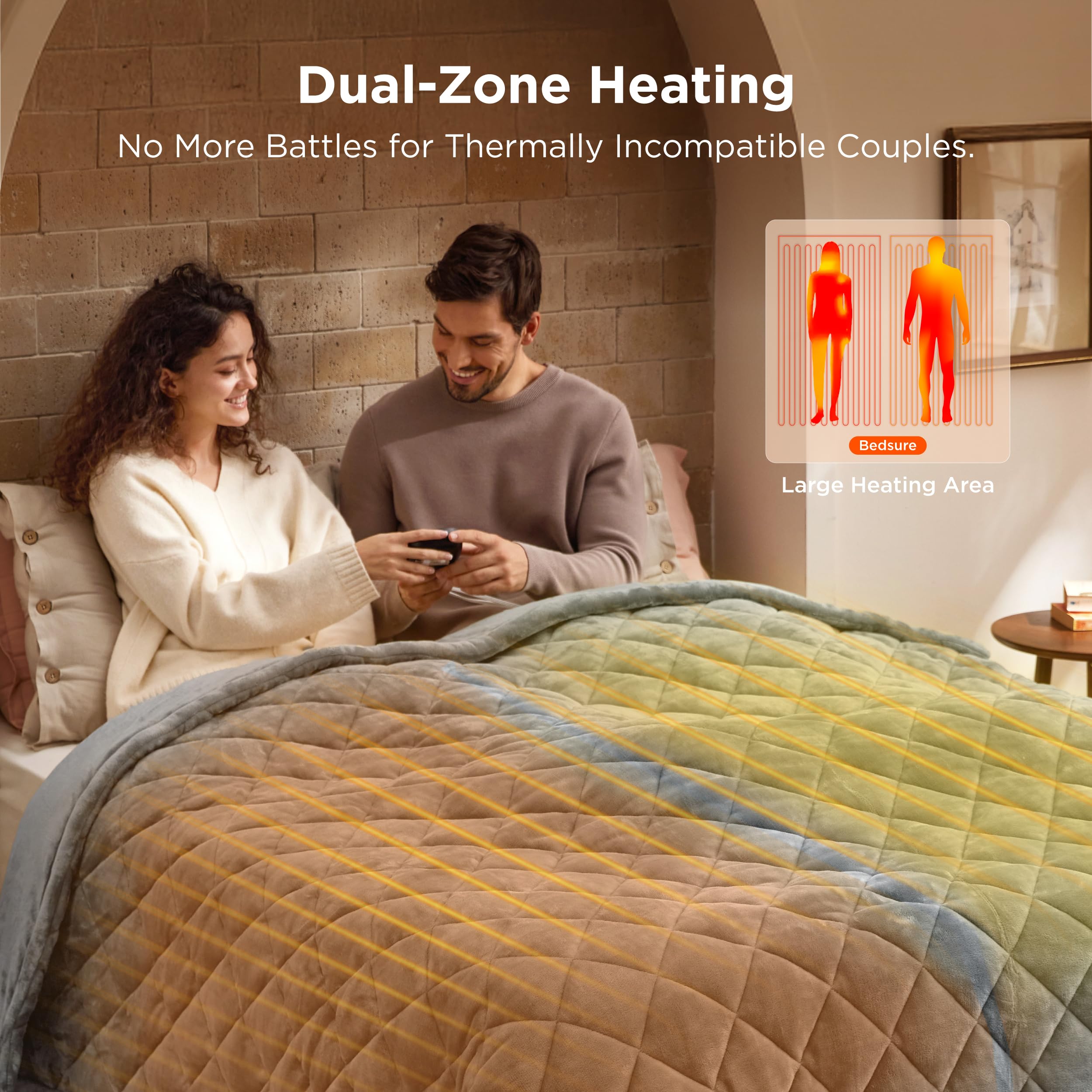 Perfect Winter Weight: This queen-size heated blanket features double-sided flannel for a soft, soothing feel. Filled with down alternative, it retains heat effectively. Get the warmth of 5 throw blankets in the comfort of just one heated weighted blanket