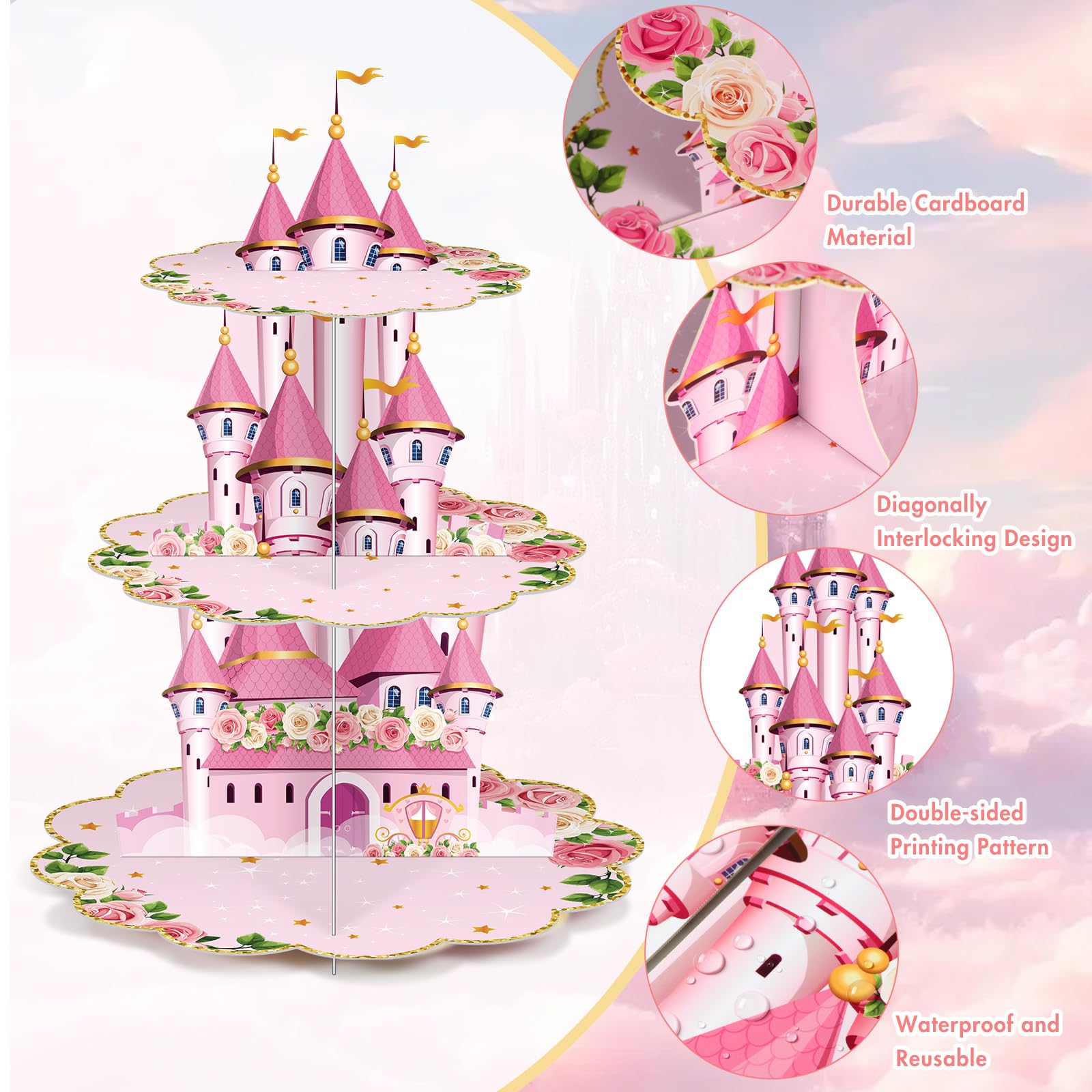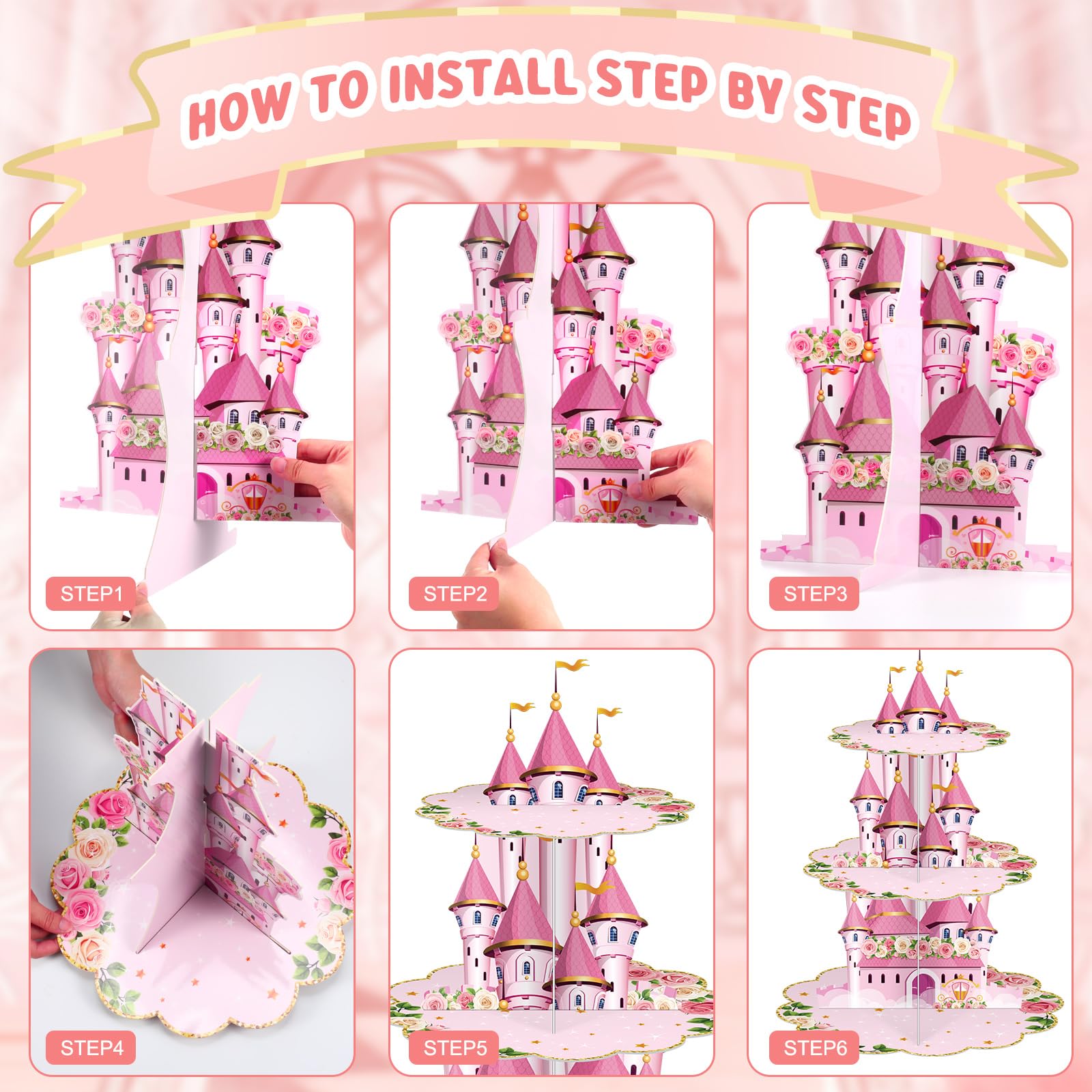 Easy to Use: our princess themed dessert tower decorations have no need to use any tools during assembly, you can refer to the assembly steps in the picture, thick cardboard is fixed between every two layers of cake stands, the groove cut matches the cardboard cut, easy to disassemble and store to save space