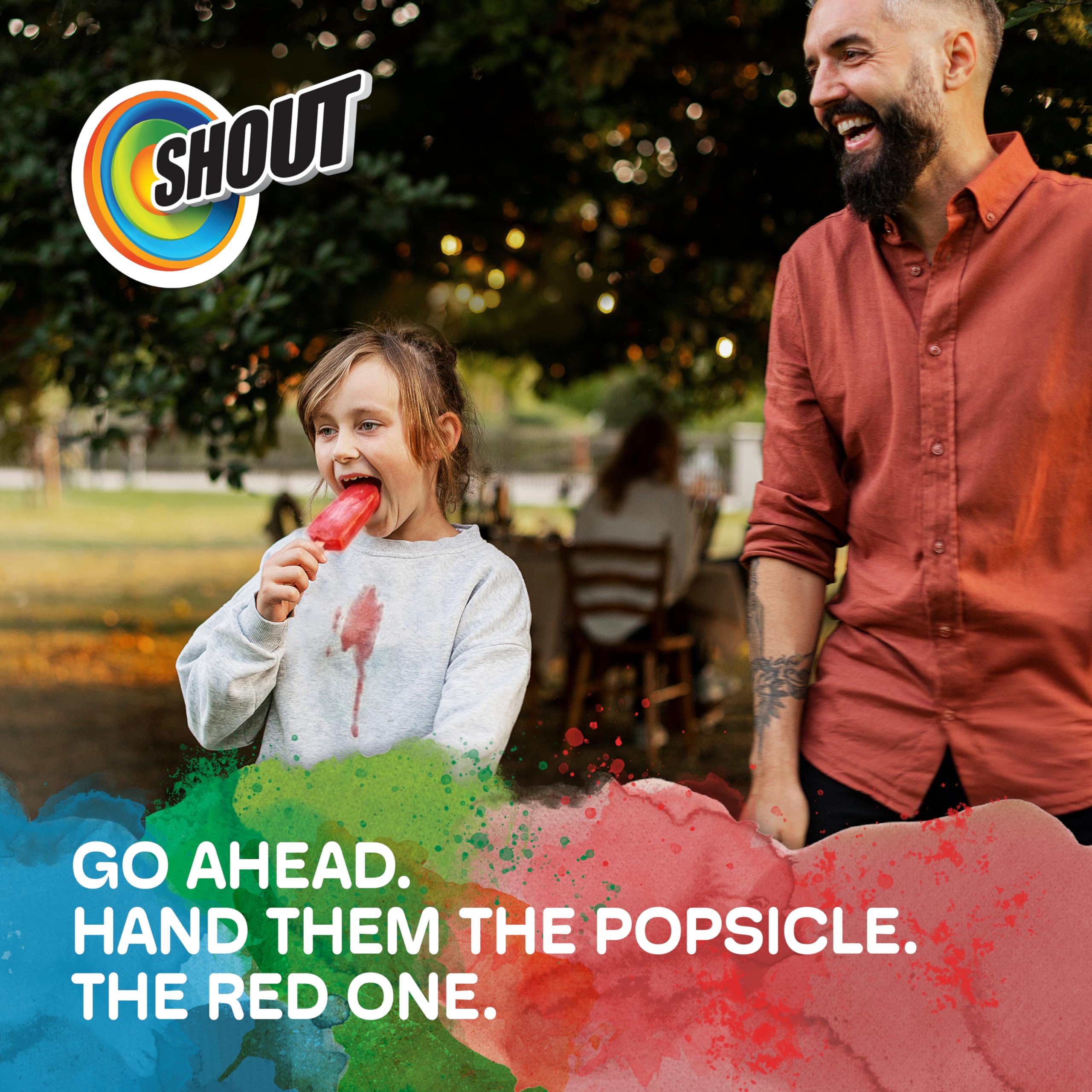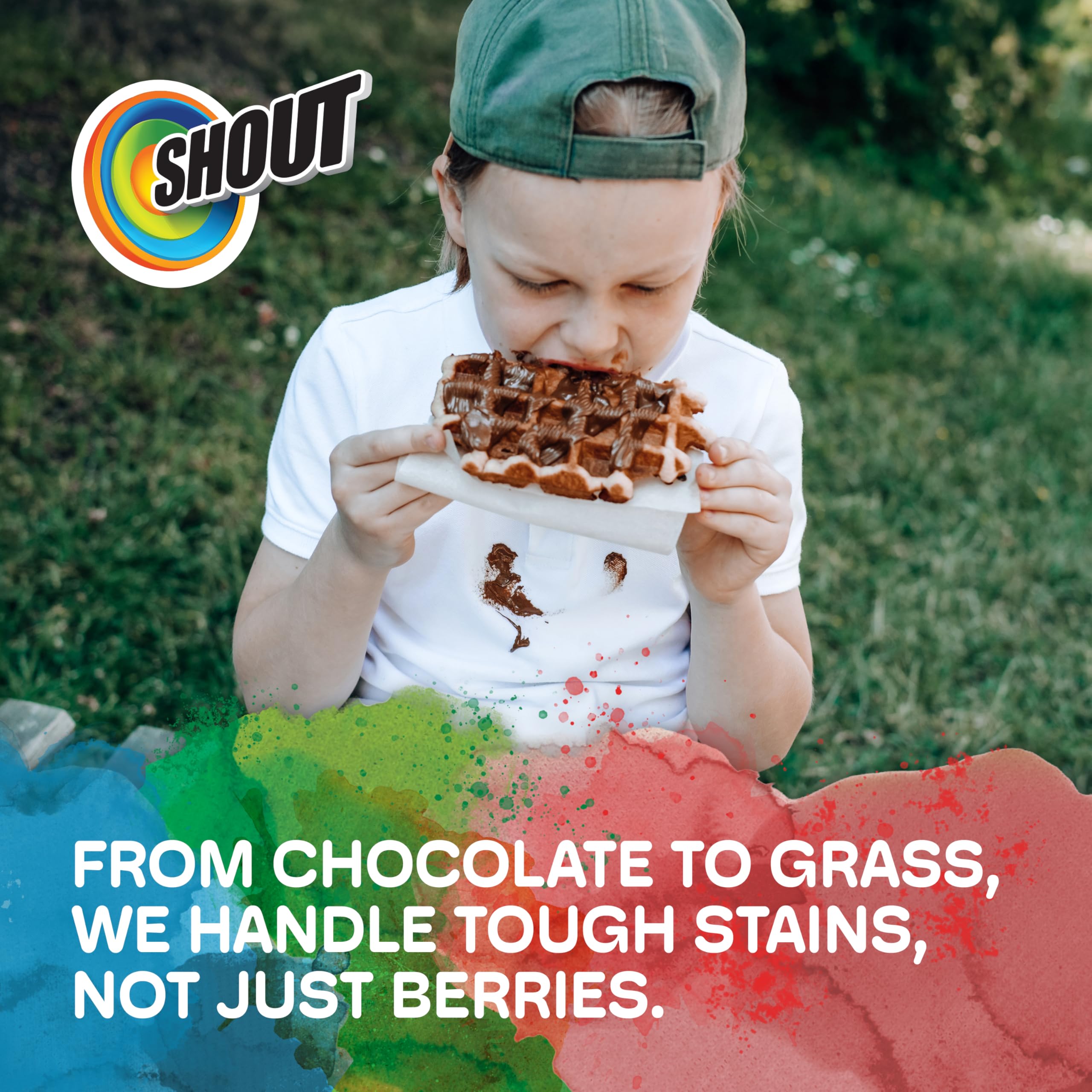 Shout Triple-Acting Laundry Stain Remover is tough on stains, but gentle on your color-fast machine-washable fabrics. It's triple-acting formula Clings onto fabric stains in the washing cycle, Penetrates stains quickly once sprayed upon, and Lifts stains off of fabric. Shout Triple-Acting is 50x more concentrated than in-wash powder* and works on a wide range of everyday stains like food, grass, dirt, and blood. Safe for all colorfast washables and works in all water temperatures. Shout has the stain-fighting ingredients to break up and remove tough stains so you can live in the moment, and clean up later.