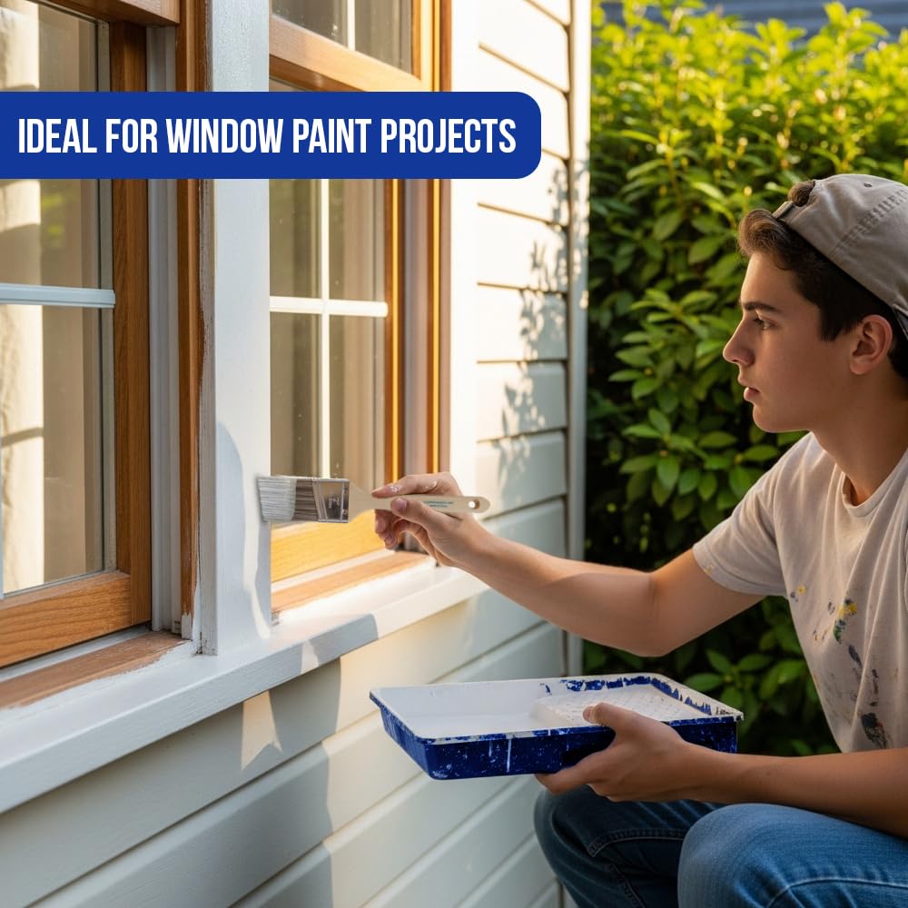 INCLUDES THE ANGLE STUBBY MOST SETS LEAVE OUT — Professional painters know the 2 Inch Angle Stubby is the go-to brush for tight cabinet interiors, window sashes, inside corners, and detailed trim where standard angle brushes are too long. Combined with the 1.5 and 2.5 inch angle sash brushes you have precision cutting-in covered at every scale — baseboards, crown molding, door casings, and ceiling lines.