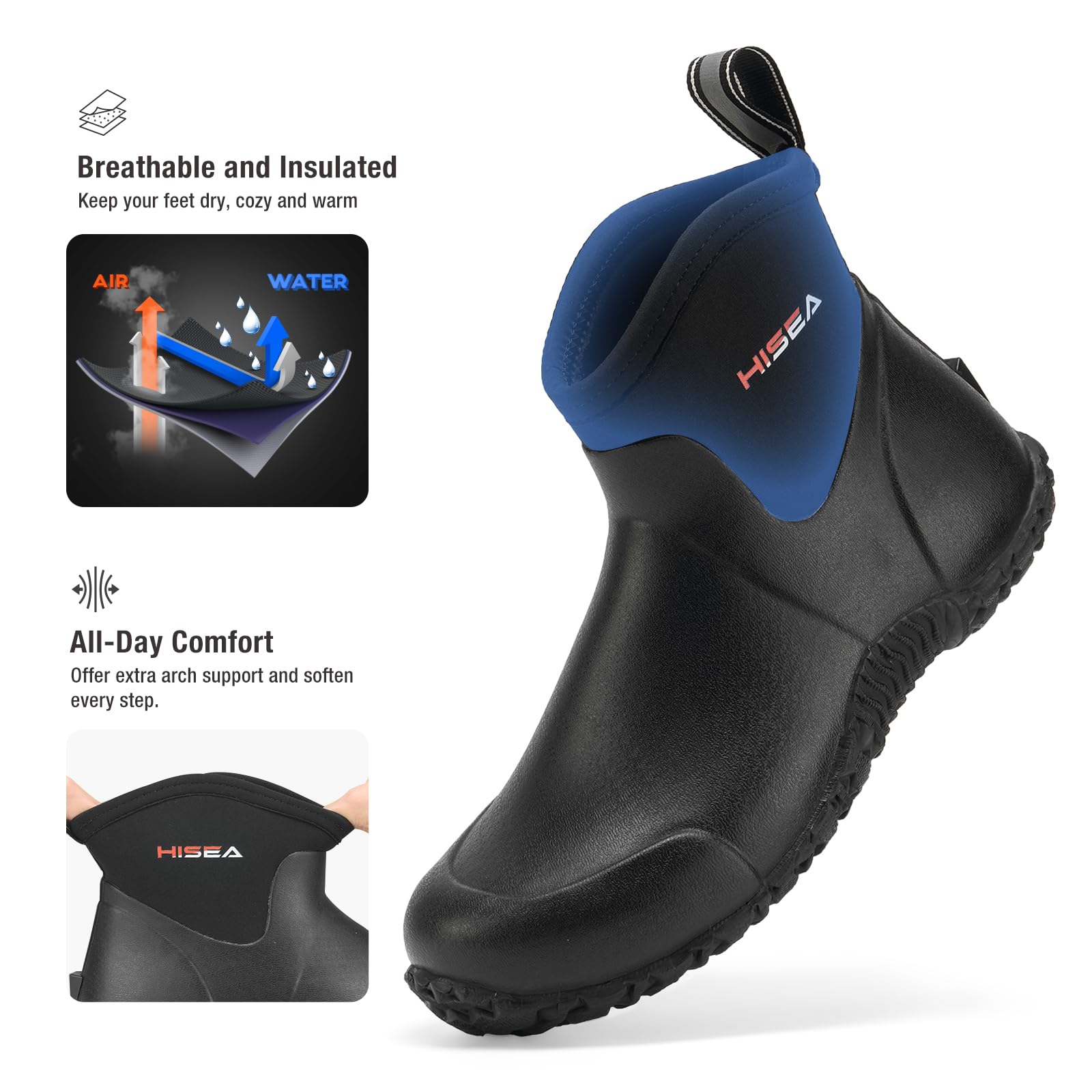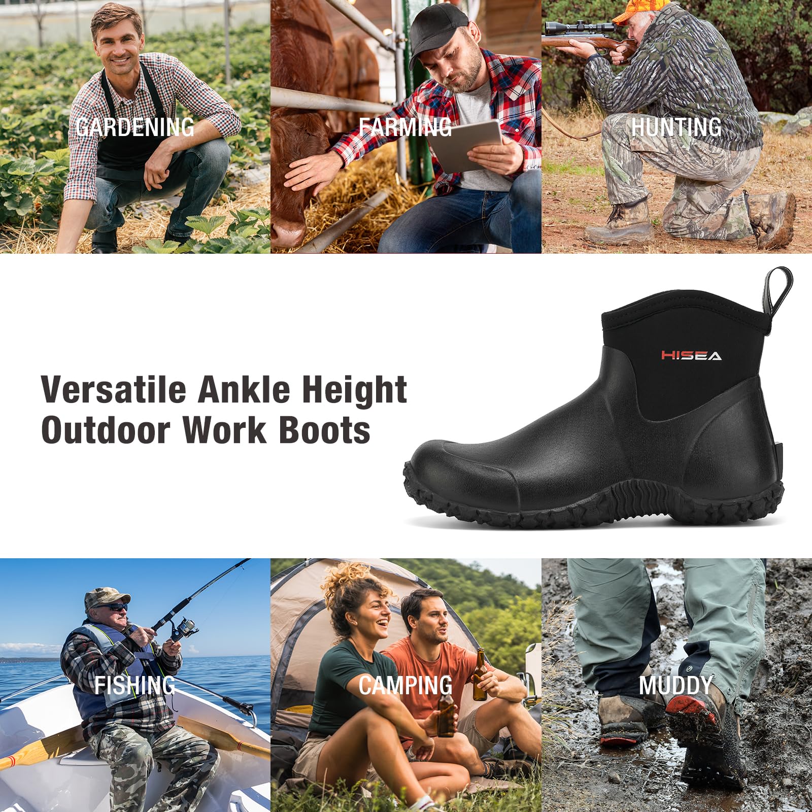 【Multi-Functional Outdoor Work Boots】Slip into waterproof, breathable and comfort with HISEA Men's Ankle-Height Rain Boots. Perfect for all outdoor activities and adventure, such as gardening, camping, hunting, farming, fishing, yard working, walking the dog, fishing. Good for all-day long use on your feet.