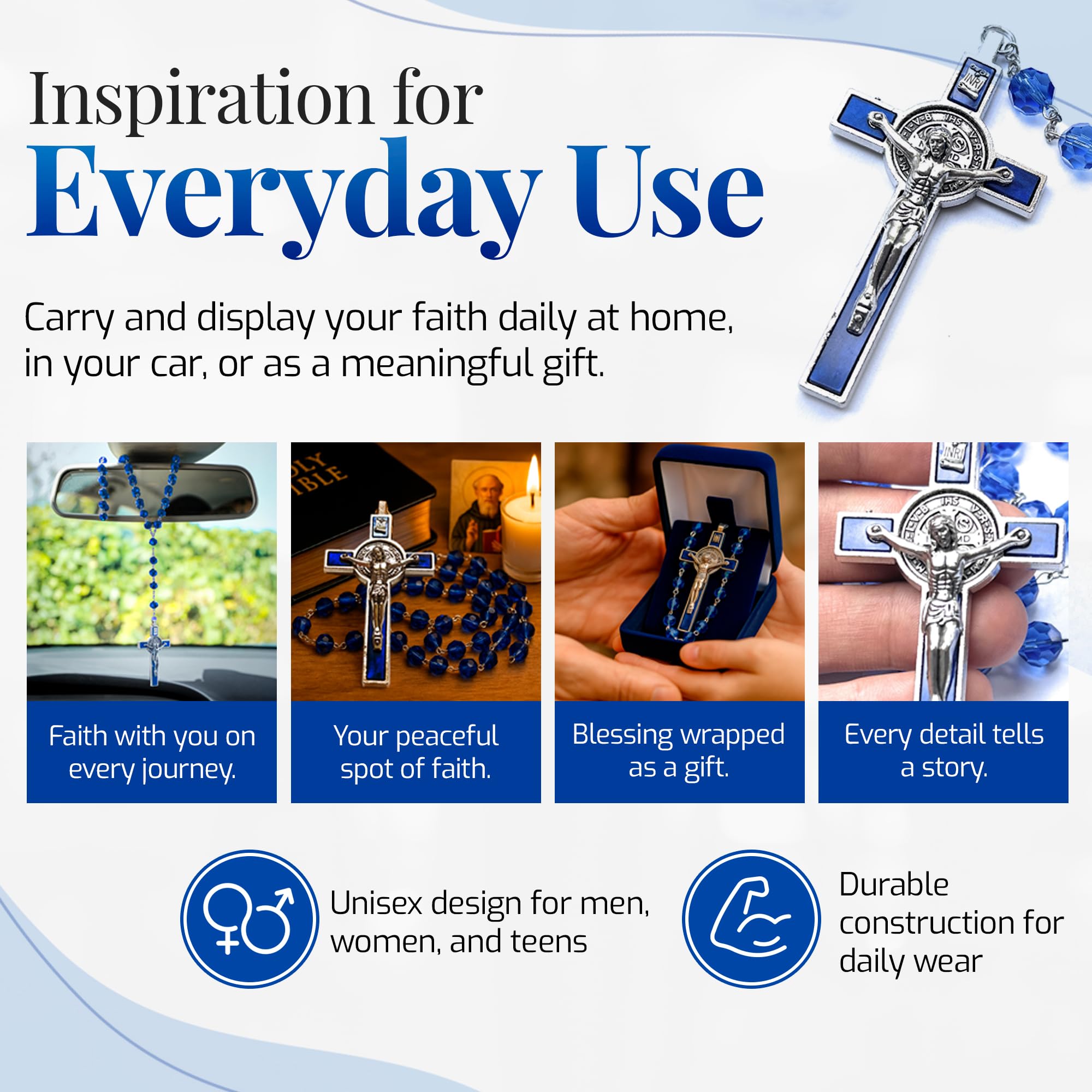 Versatile and durable for everyday use — smooth feel and sturdy crucifix for prayer, travel, and display; unisex rosary necklace for men, women, and teens; rosario unisex, collar con cruz, rosary beads for car rearview mirror, accesorios católicos, rosario para viaje
