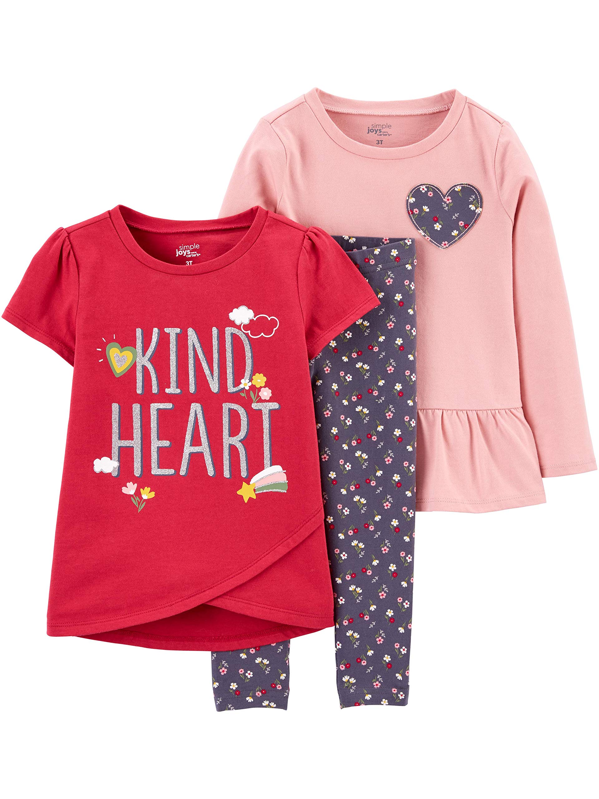 Description Outfit your stylish little girl with the perfect mix of comfort and style in this versatile 3-piece playwear set for baby girls from Simple Joys by Carter’s. This set includes two coordinated tops and a comfy pair of pants (or shorts), allowing for endless outfit combinations. Whether it’s a long-sleeve top with pants for cooler days or a short-sleeve top with shorts for warm playdates, these sets adapt effortlessly to any season. With playful prints and eye-catching patterns, each piece is designed to mix, match, and stand out. Ideal for active girls these outfits are crafted for both durability and fun, making this set a must-have for any little adventurer’s wardrobe.